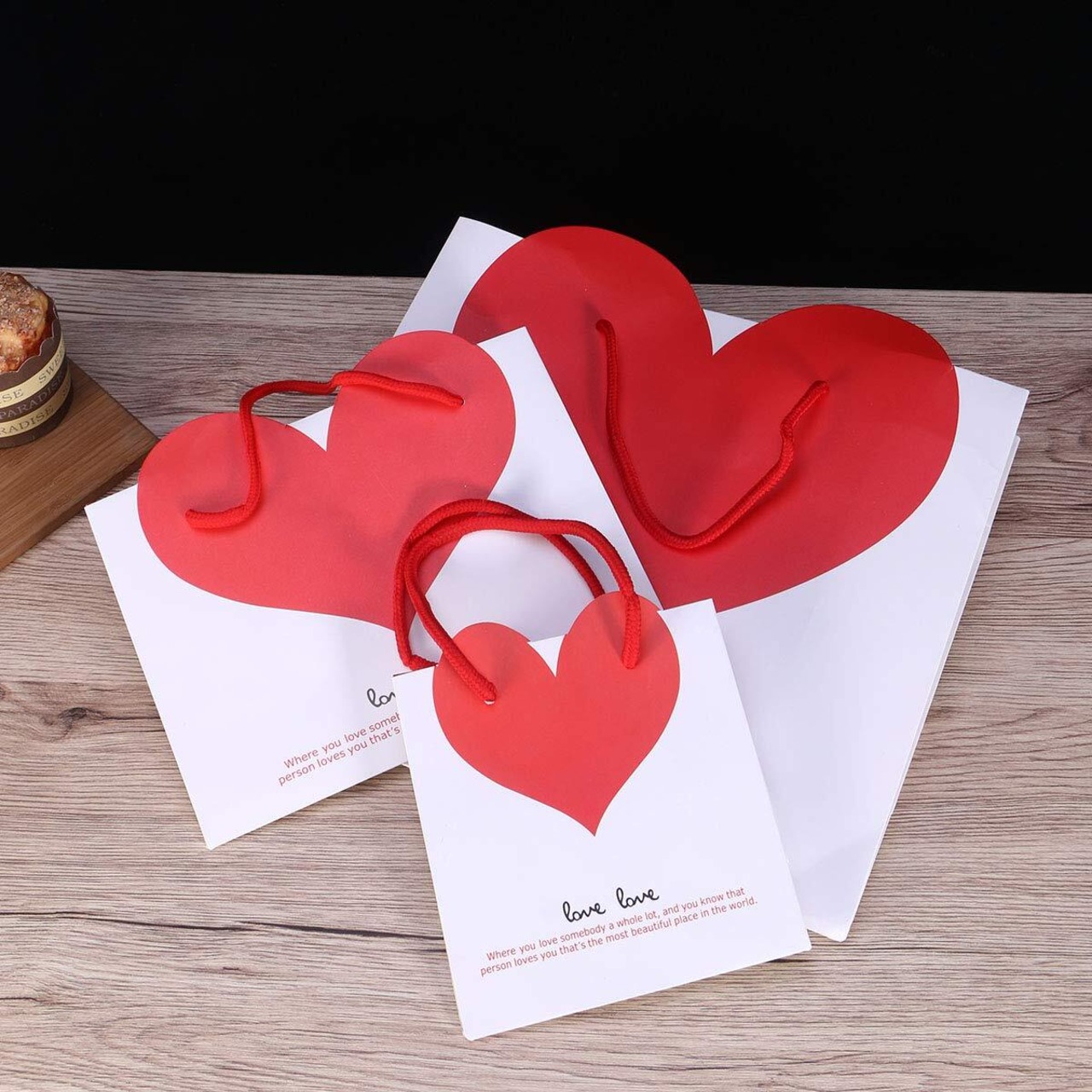【ハートデザイン】特別なハートデザインの手提げ袋、可愛くて、環境に優しく、安全に使用できる の紙で作られています。