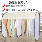 ■急な雨でも安心!洗濯物をしっかりガード!マンションのベランダやお庭での洗濯物干しで役立つ汚れ防止カバーです。竿に通すだけで簡単に取り付け可能!両サイドには立体メッシュを使用しているので、雨の侵入は防ぎながら風を通します。