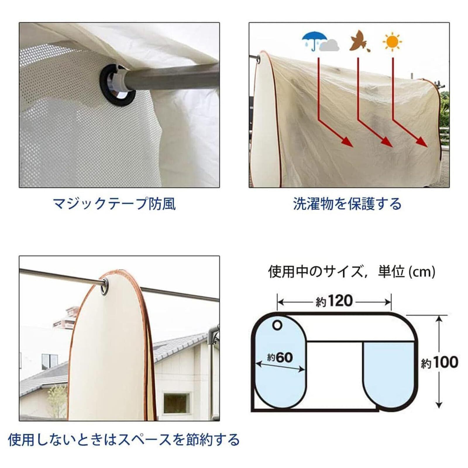 花粉 洗濯物 カバー 雨よけカバー 目隠し 幅120cm コンパクト収納 洗濯ネット 日除け 雨天 陰干し ほこり 洗濯干し 鳥対策 紫外線対策 幅広 大きめ (120CM)