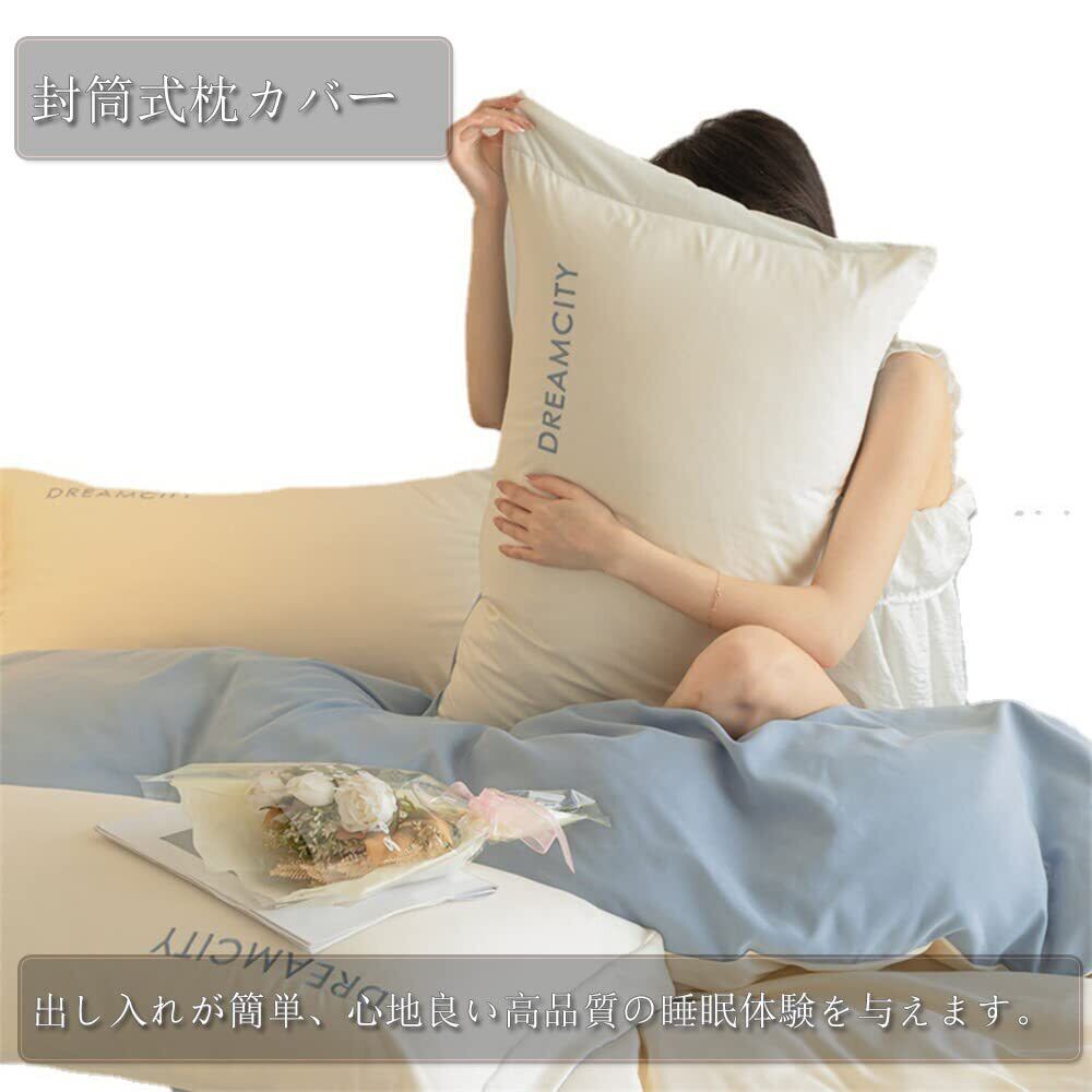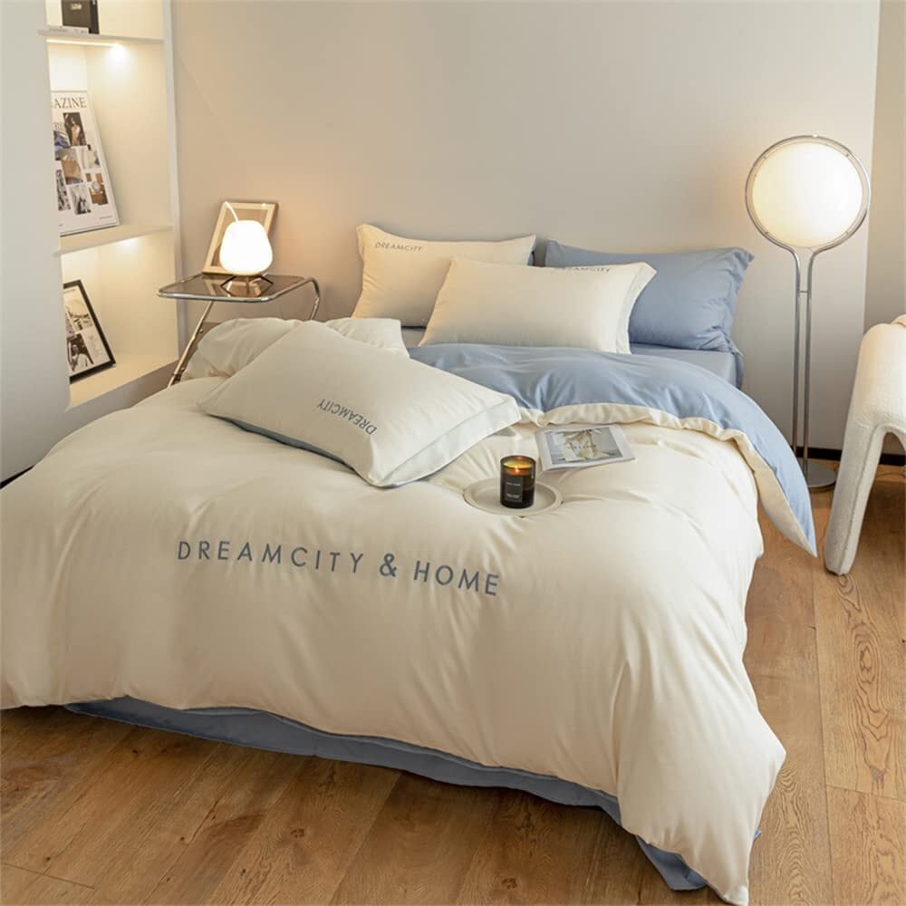 【数量限定】【 限定】 布団カバー 綿 100% セミダブル 4点セット 寝具カバーセット 刺繍 洋式・和式兼用 無地 掛け布団カバー ボックスシーツ 枕カバー ベッド用 布団用 高密度生地 布団カバーセット 洗い替え速乾タイプ 防ダニ (セミダブル,ミルクセーキ白&ライトブルー) | ニコニコSHOP