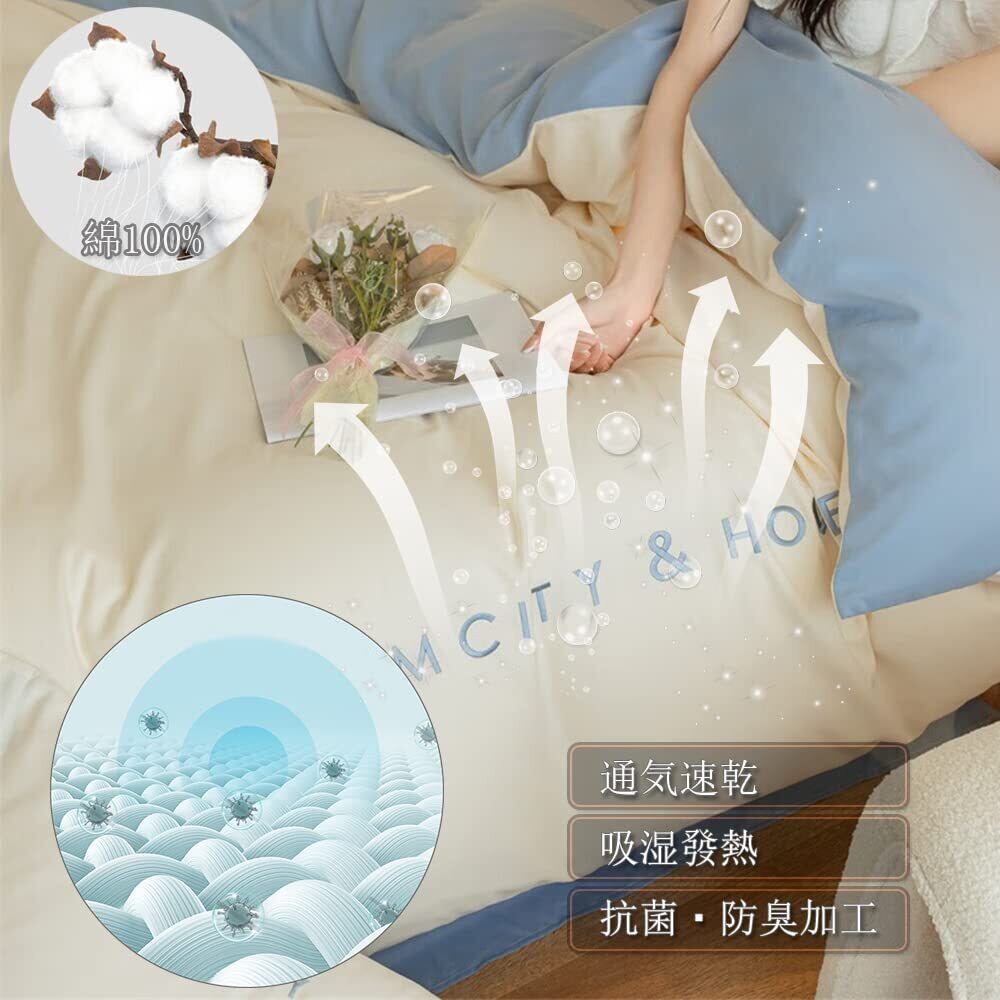 『抗菌防臭加工・防ダニ加工』優れた抗菌防臭効果があり、カビなどの微生物による繊維製品の劣化を抑制。繰り返しの洗濯にも、効果は殆ど変わりません。※布団カバーのDREAMCITY&HOMEの文字は足元側※