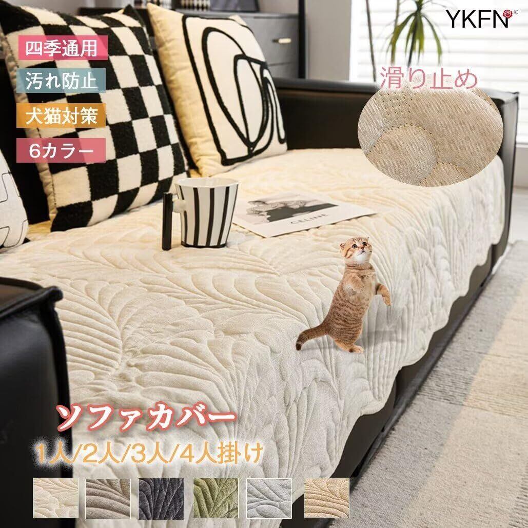 YKFN ソファパッド ソファーカバー 3人掛け 肘付き かけるだけ マルチカバー ソファー ペット用 替えソファカバー ソファーシート 滑り止め 座面カバー 肘なし 防塵 汚れ防止 傷防止 爪とぎ防止 北欧 シンプル ペットホーム カウチ ソファーシーツ ソファー保護カバー 無地 四季通用 洗える ベージュ 90*160CM