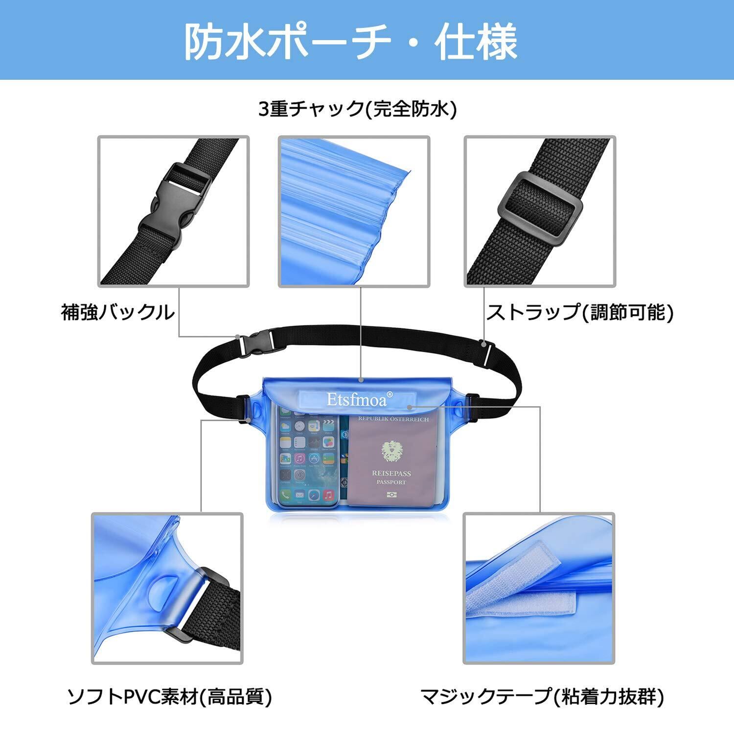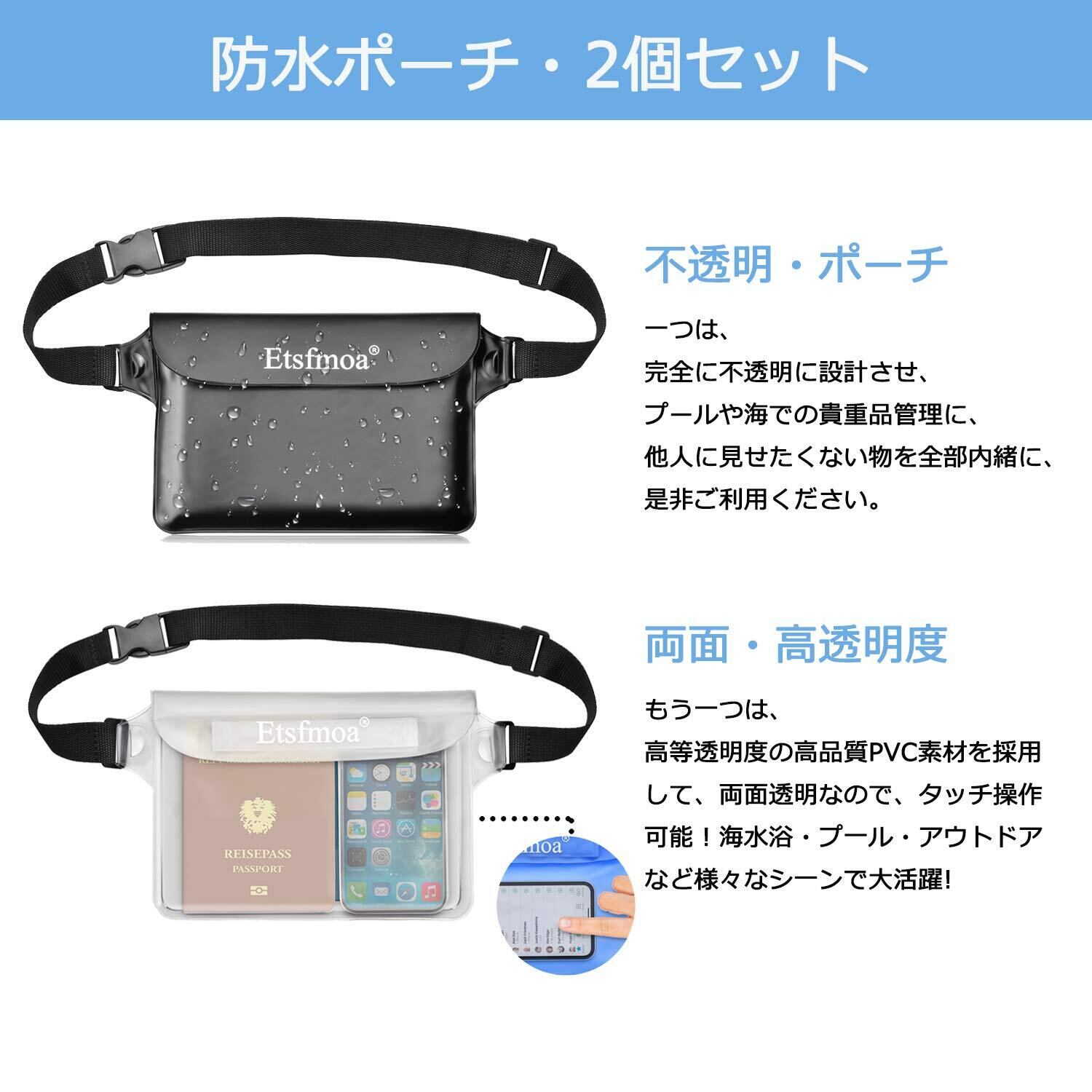Etsfmoa 防水ポーチ 防水ケース 防水ウエストポーチ 完全防水 スマホ 小物入れ 海 海水浴 プール お釣り アウトドア 大容量 三重チャック 4WAY PVC素材 メンズ レディース 2個セット