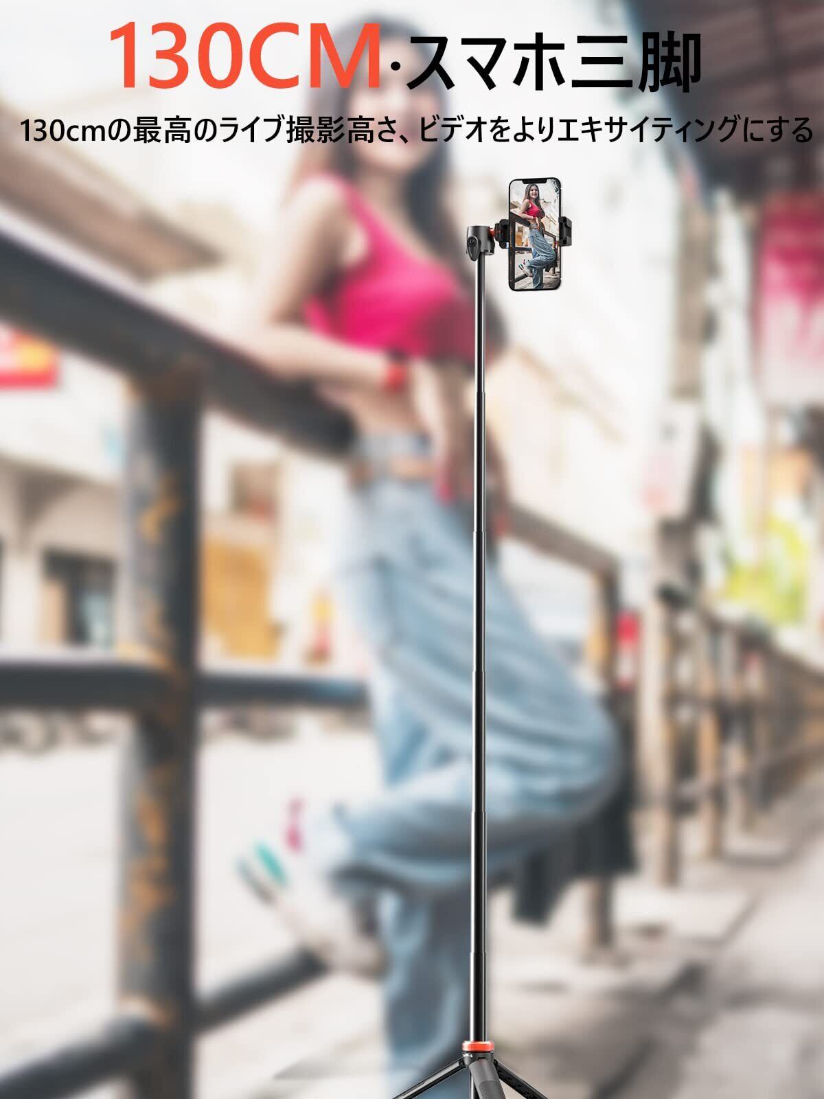 スマホ三脚 自撮り三脚 130cm スマホ スタンド カメラ アクションカメラ GoPro 自由雲台 コールドシュー付きiPhone Android対応 三脚/一脚兼用 5段階伸縮 折りたたみ 持ち運び便利 セルフィー/撮影録画/動画鑑賞/ライブ配信に最適