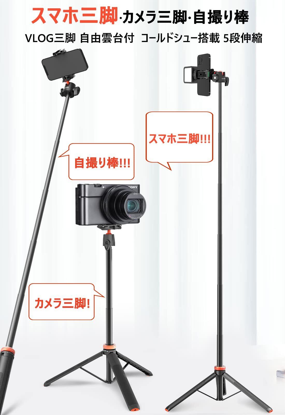 【特価商品】スマホ三脚 自撮り三脚 130cm スマホ スタンド カメラ アクションカメラ GoPro 自由雲台 コールドシュー付きiPhone Android対応 三脚/一脚兼用 5段階伸縮 折りたたみ 持ち運び便利 セルフィー/撮影録画/動画鑑賞/ライブ配信に最適 | ニコニコSHOP