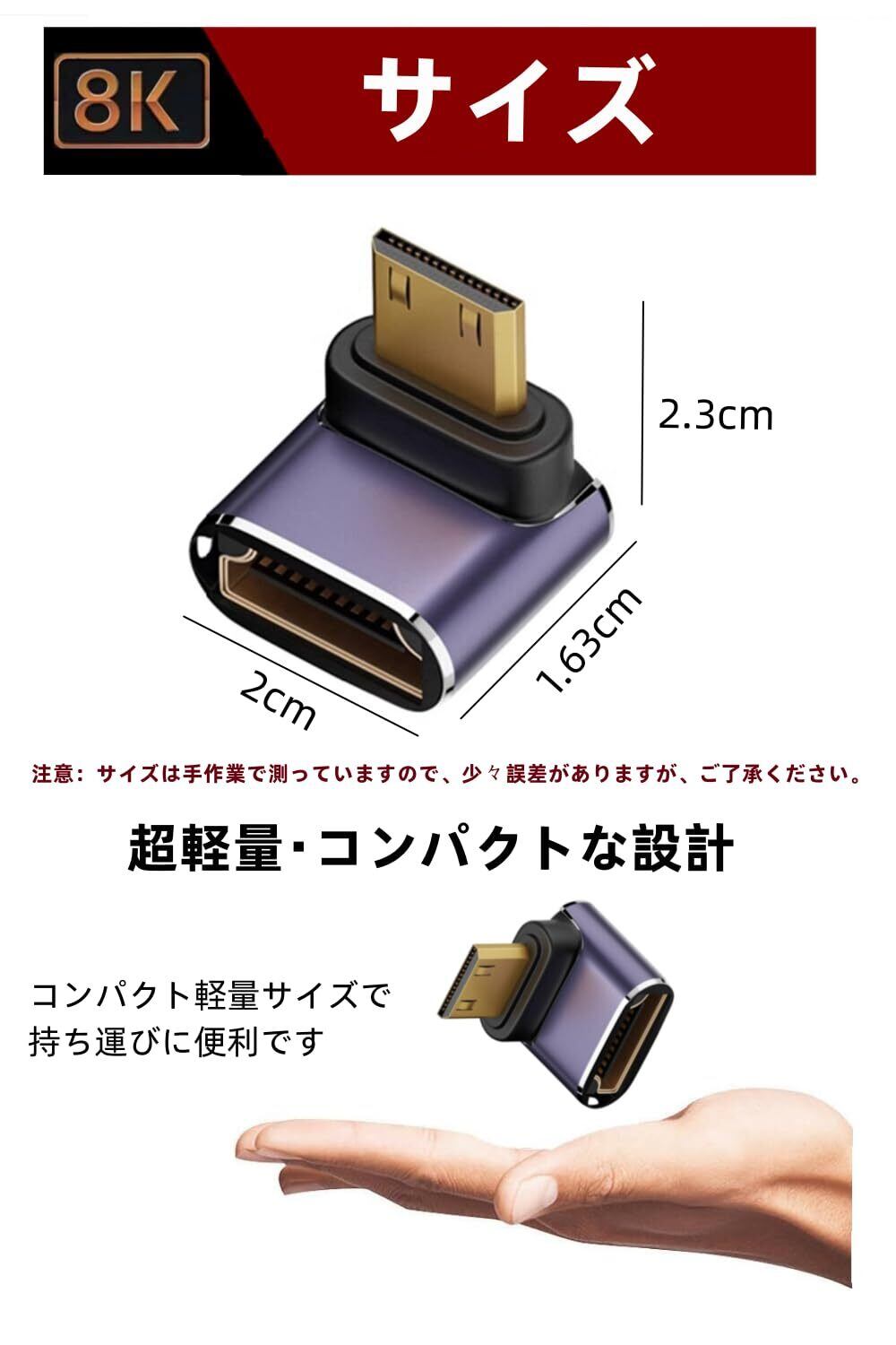 YFFSFDC HDMI L型変換アダプタ Mini HDMI(オス) to HDMI(メス) L型 HDMI延長アダプタ 8K HDMIミニ HDMI2.1変換アダプター 8K@60Hz, 4K@144Hz, 2K@240Hz HDR対応 金メッキコネクタ 2個セット (下向き)
