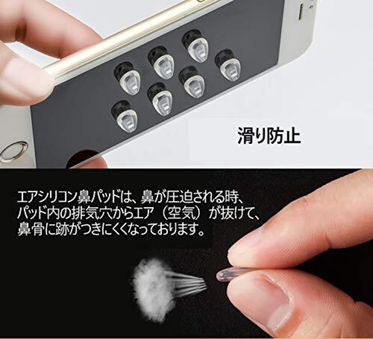 【エアクッション鼻パッド】中空構造になっており、軽くて衝撃を吸収でき、鼻への負担を大幅に減らします。通気性が良い。