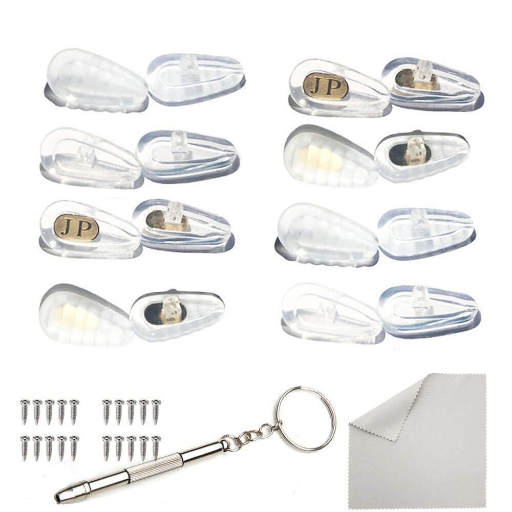 [TongTang] メガネ鼻パッド エアクッション 8ペア 柔らかい シリコン 眼鏡メガネずり落ち防止 鼻あて ズレ落ち防止タイプ(交換用ネジ・ドライバー ・クロス)
