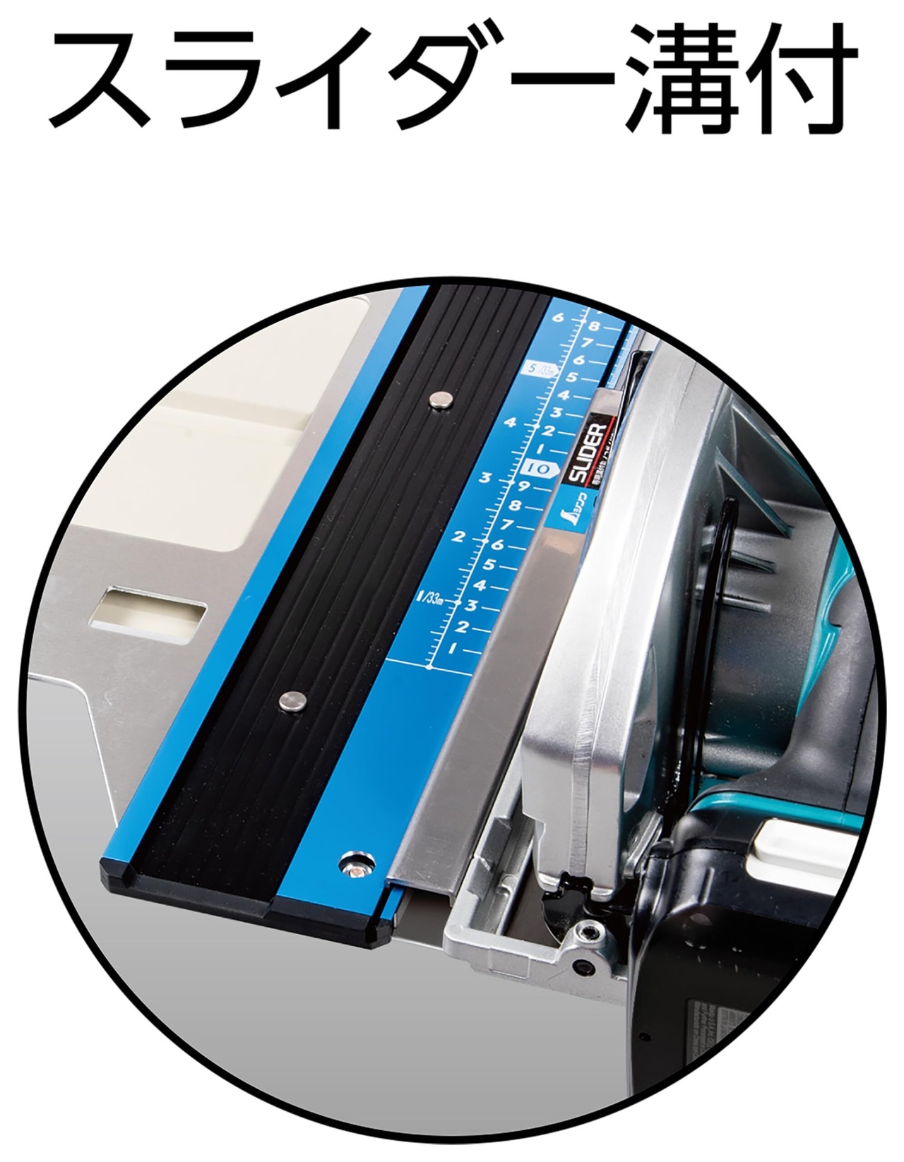 材料を傷から守り、凹凸があっても切断できる補助板付です。