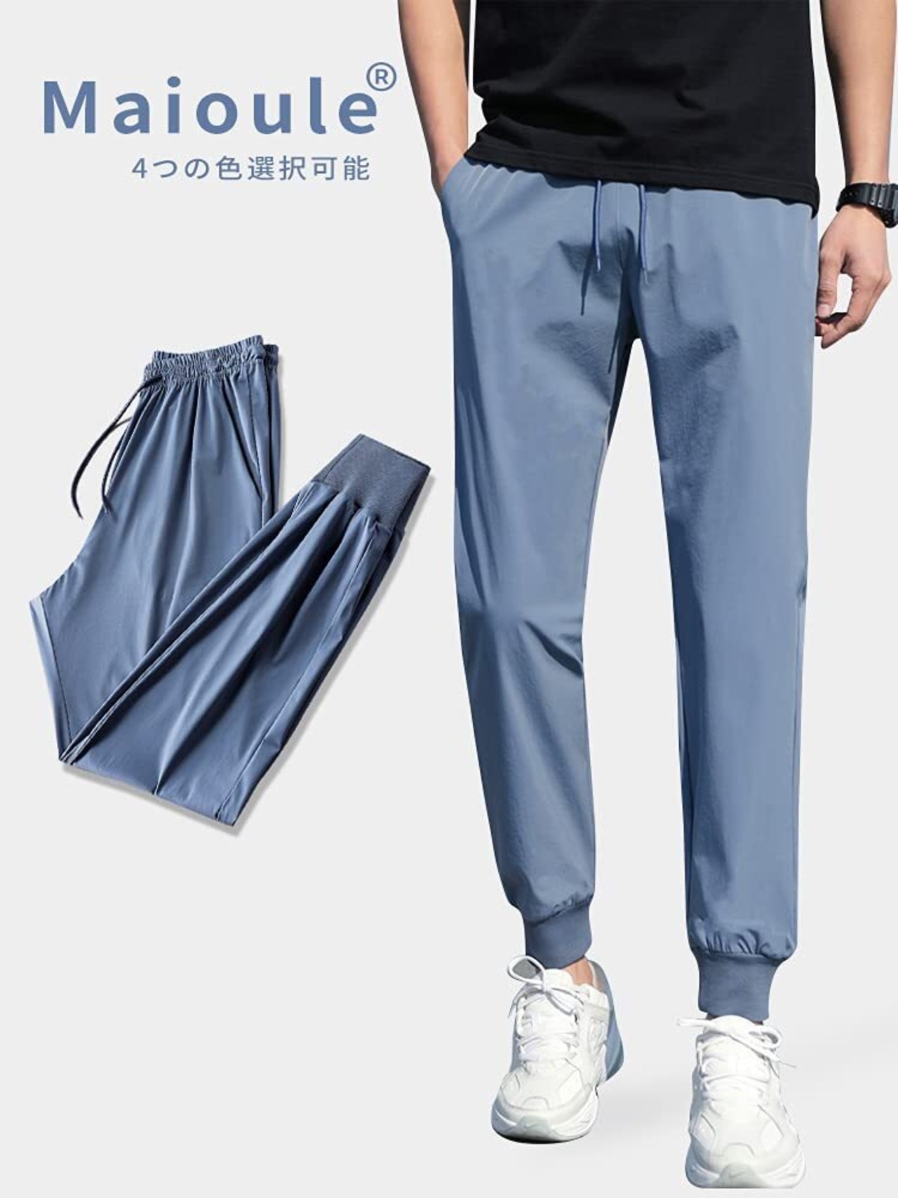 [Maioule] スウェットパンツ アイスシルクパンツ メンズ 接触冷感 吸水速乾 サラサラ快適 通気性 バウンシー スリムフィット 夏用 薄手 涼しい 無地 大きいサイズ