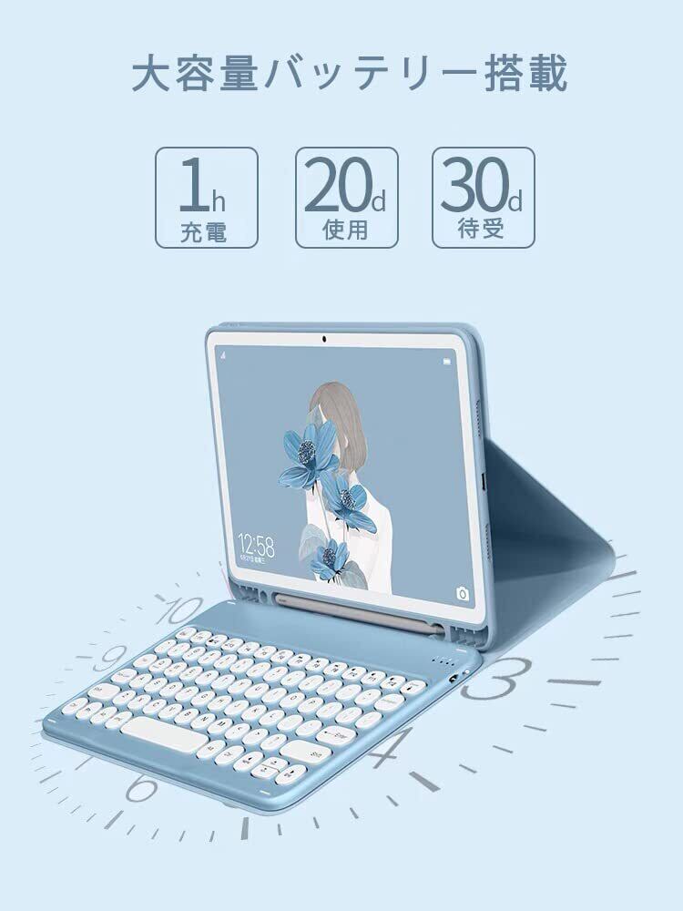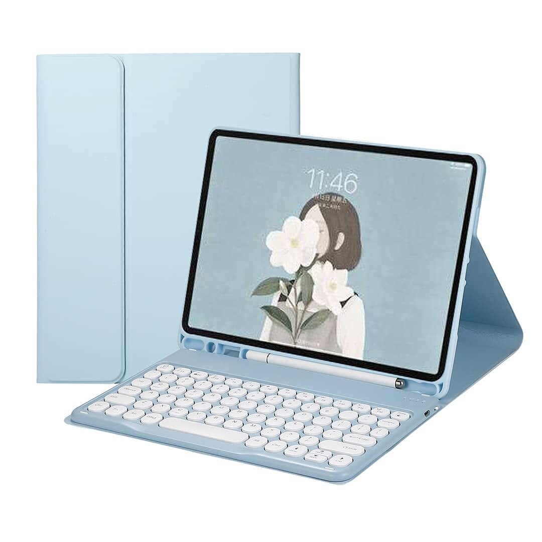 iPad第10世代 2022/ iPad (A16) 2025 兼用キーボード付きケース 丸型キーカラーキーボードケース ペンホルダー付き 脱着式 全面保護 ブルー