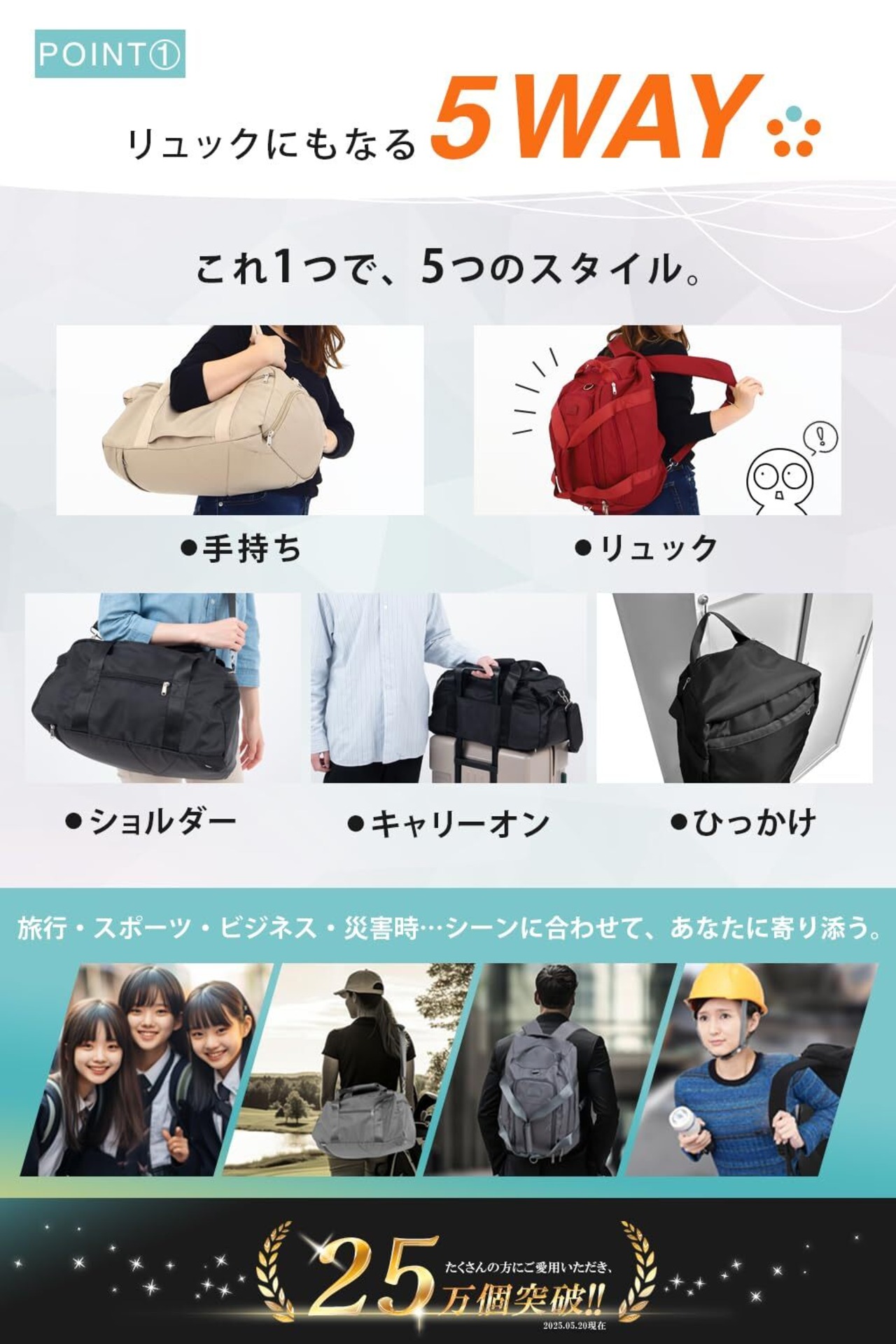 ボストンバッグ 【リュックにもできる5WAY】(防水ポケット大き目/30Lでも大容量/軽量) スポーツバッグ 旅行バッグ キャリーオンバッグ メンズ レディース 機内持ち込み 1泊 2泊 5泊 comfox (コムフォックス)