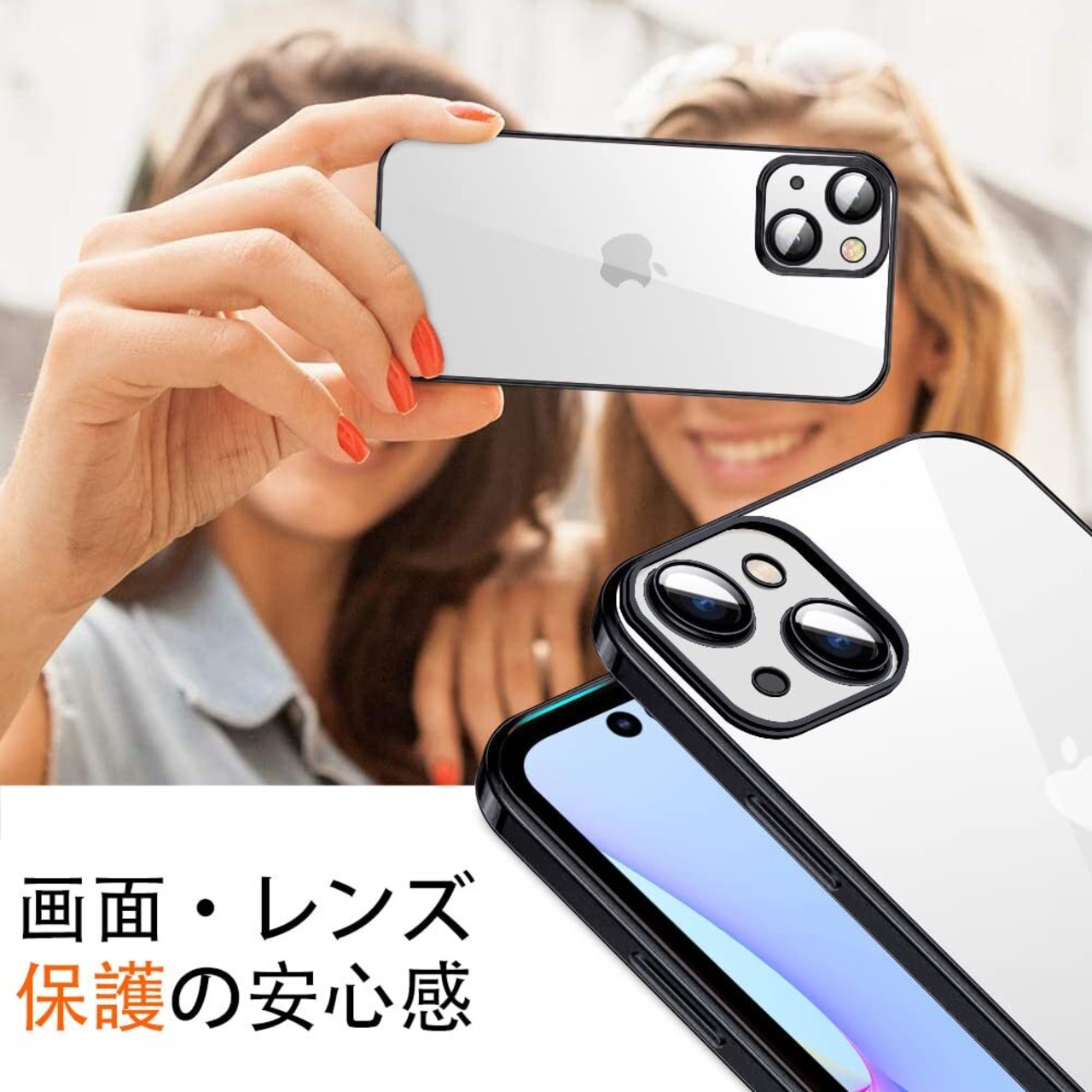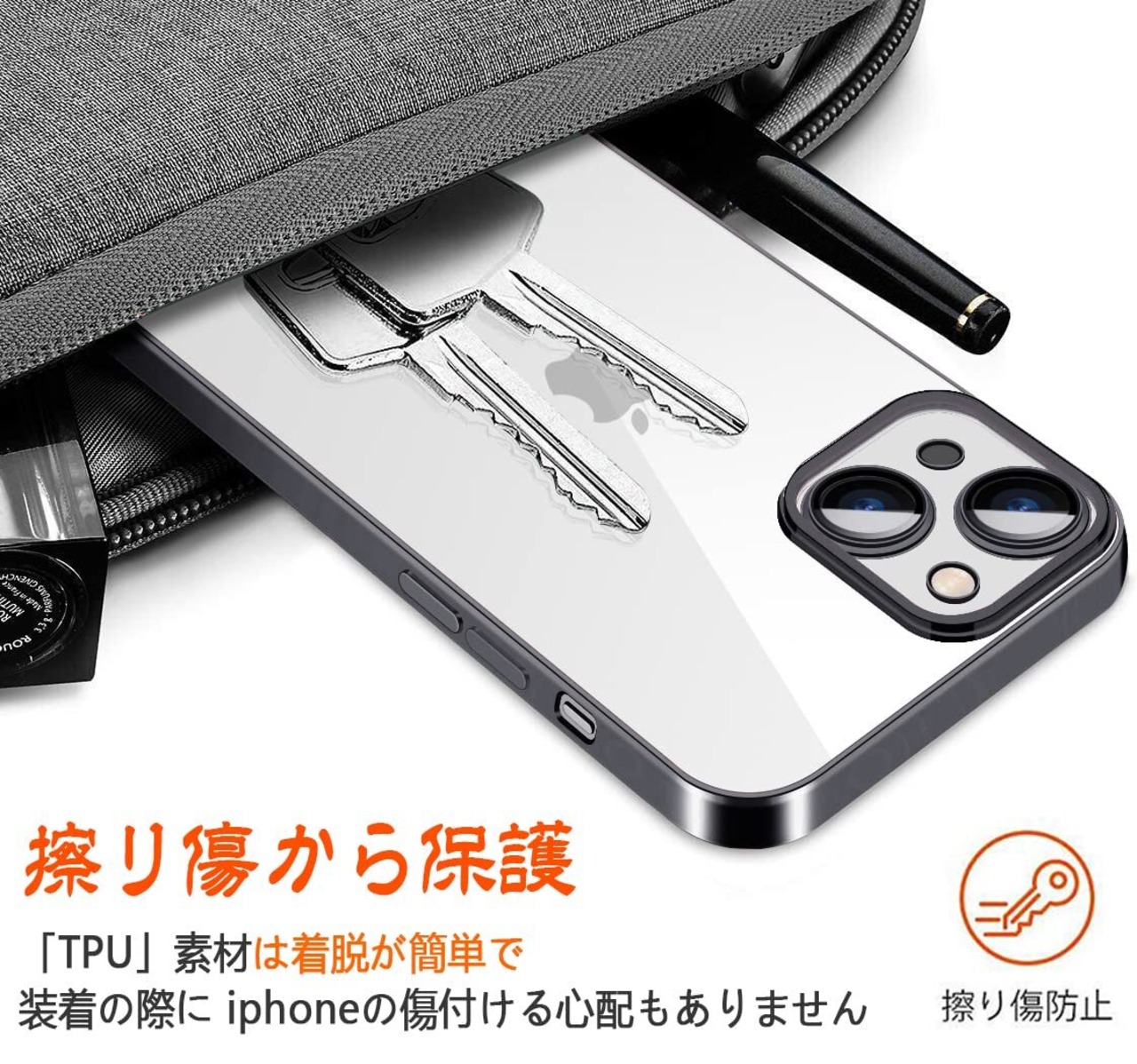 iPhone 14 用 ケース クリア TPU 薄型 iphone14 用 カバー スマホケース 耐衝撃 スリム 透明 シリコン 黒 メッキ加工 黄変防止 ストラップホール付き 6.1インチ アイフォン 14 用 ケース ブラック