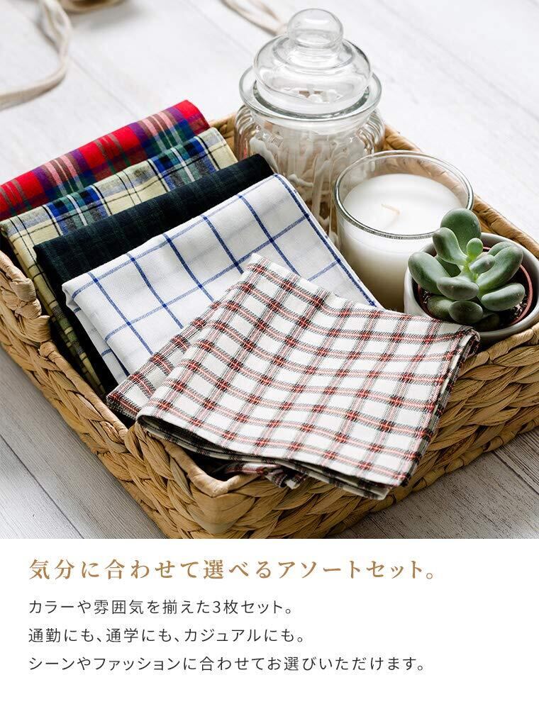 [B-PLAID] ハンカチ メンズ 日本製 3枚 5枚 セット 大判サイズ 48×48cm チェック柄 速乾 吸水 薄手 ギフト