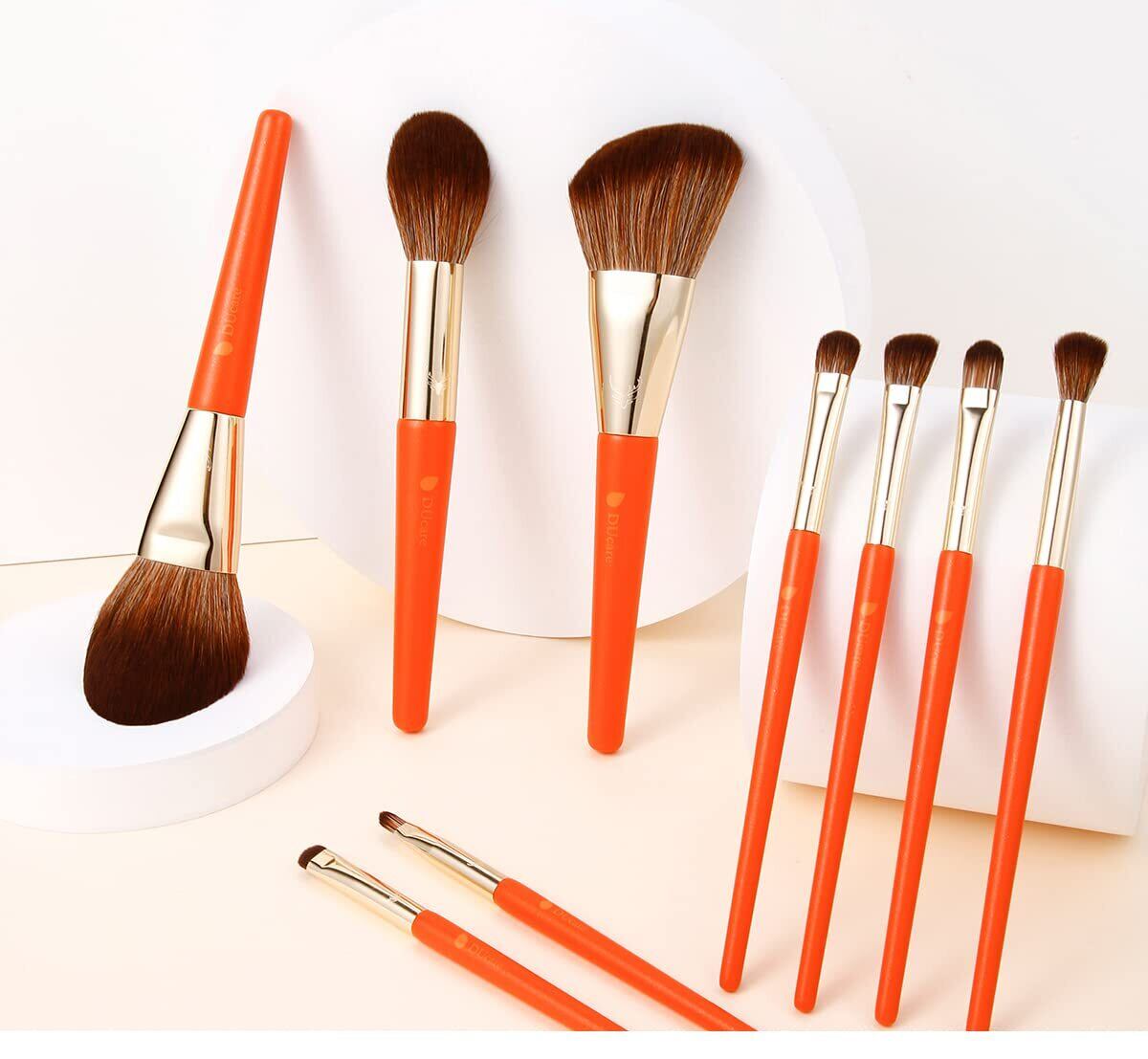 DUcare ドゥケア メイクブラシ 9本セット 化粧ブラシ アイシャドウブラシ フェイスブラシ 化粧ブラシ 超柔らかい 収納ポーチ付き 持ち運び便利 メイク道具 プレゼント 厳選した極細毛 超柔らかい 化粧筆 オレンジ