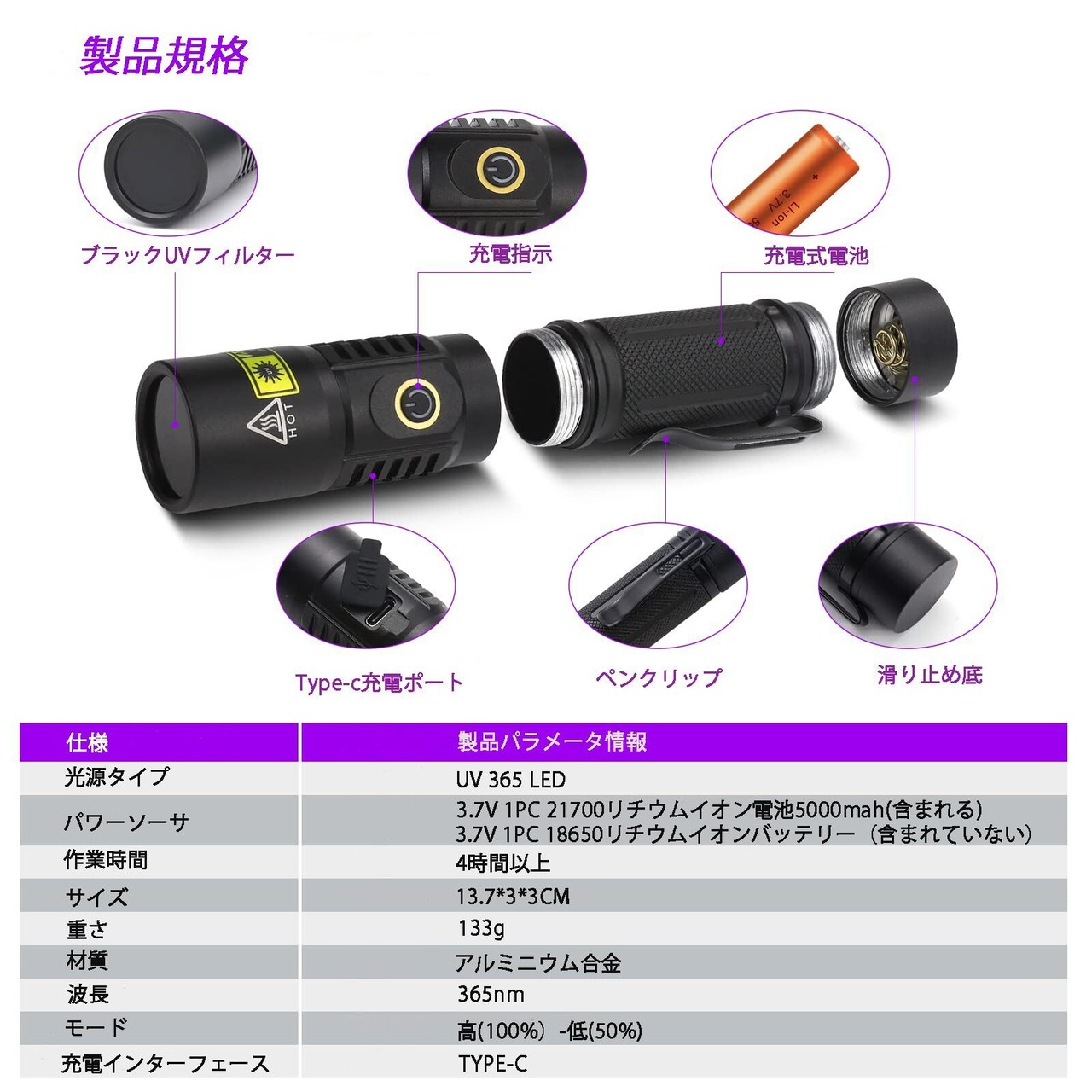 【数量限定】ブラックライト 365nm 20W USB充電式 UVライト レジン用 硬化 強力 紫外線 IPX4防水 2種モード アルミニウム合金製 小型 釣りペット尿検出器 サソリ アニサキス 鑑定 真贋 鉱物用 目には見えない汚れに対策 21700電池を付き (black) | ニコニコSHOP
