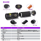 『TYPC‐C充電式&電量指示』紫外線ライトは最新の充電式を採用し、5000mAh大容量電池を搭載し、フル充電で最大4時間以上の駆動時間で、とても便利です。また、電量指示を搭載されており、突然バッテリーが切れて暗くなる心配はありません。充電中または低電力の場合は赤色光、フル充電中または高電力の場合は緑色光で点灯します。