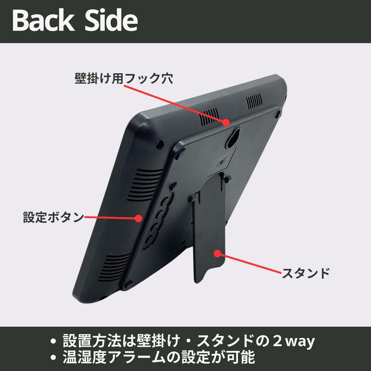 【仕様】本体サイズ:17 x 21 x 2.5 cm 重量:524g 測定温度範囲:-20℃~80℃ 測定湿度範囲:0%~99% 温度精度:±1℃ 湿度制度:±5% 電源:電源コード式(電池又は充電式ではありません)