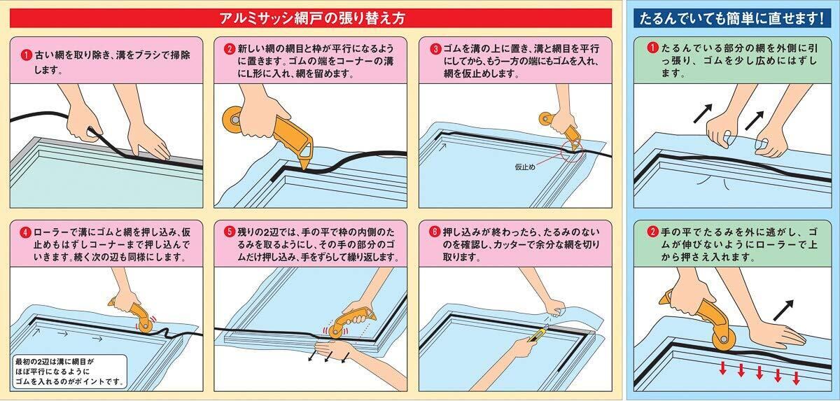 張る場合は別売りの「ローラー」を使って、ネットと一緒にゴムを溝に入れてゆきます。