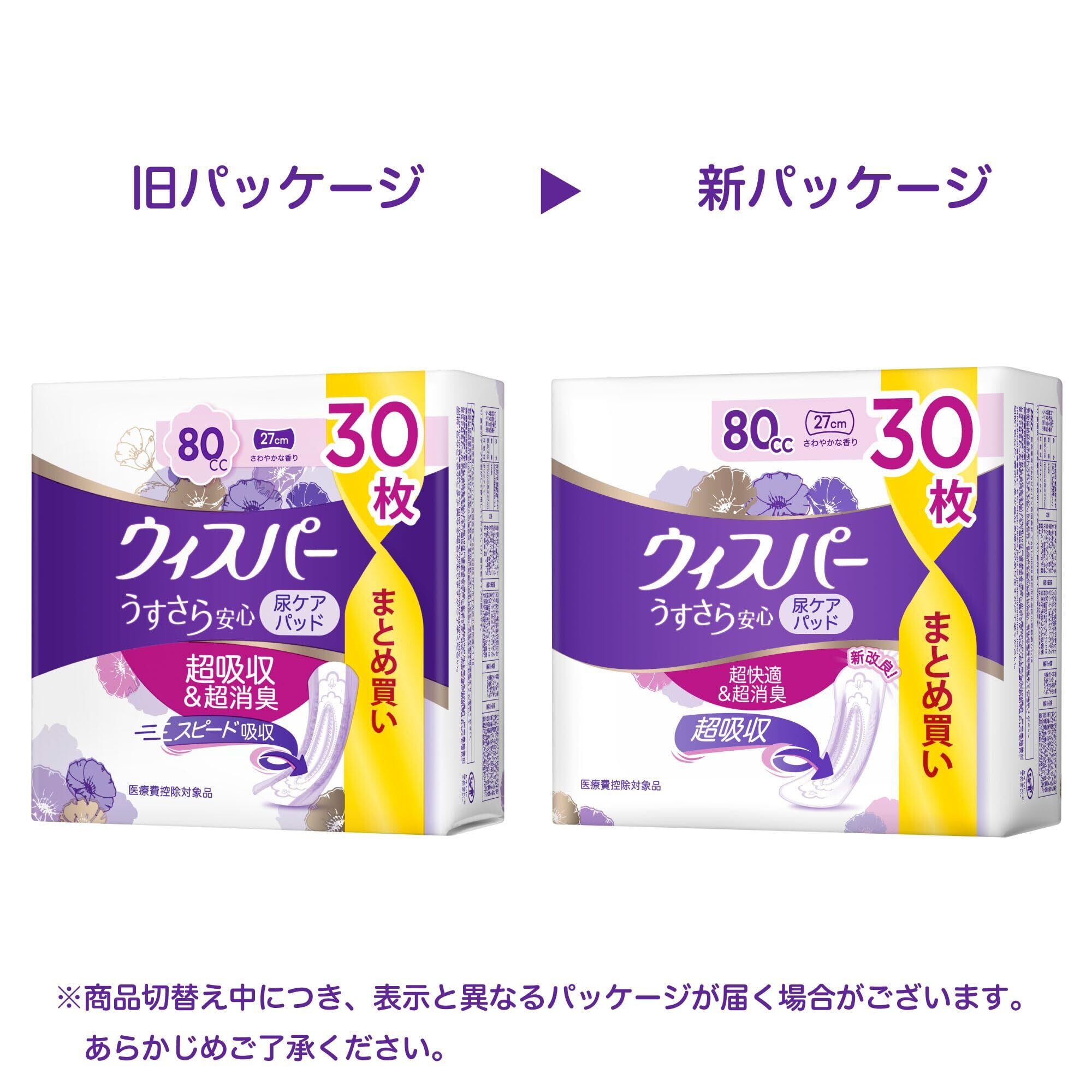 WHISPER ウィスパー うすさら安心 80cc 90枚 (30枚×3パック) (吸水ナプキン 尿漏れパッド 女性用)【中量用】
