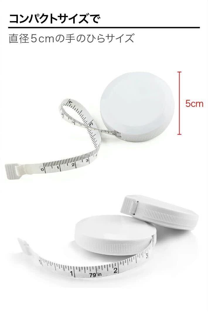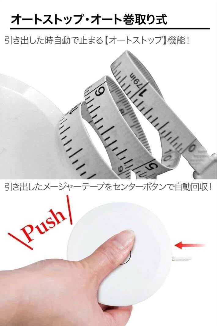 【軽量で使いやすい】 自動巻取式メジャーはポケットサイズで、軽くてコンパクトで持ち運びに便利です。収納や保管されていても、スペースを取りません。何か測定したいときに、役に立てます。テープ部分は柔らかいので、傷ついた指にも優しくて使いやすく、周囲測定の時にも重宝します。200cm(79inch)まで計測できますので、とても便利で、様々な場面で活躍します。