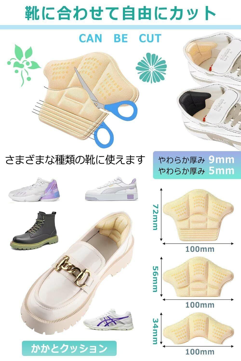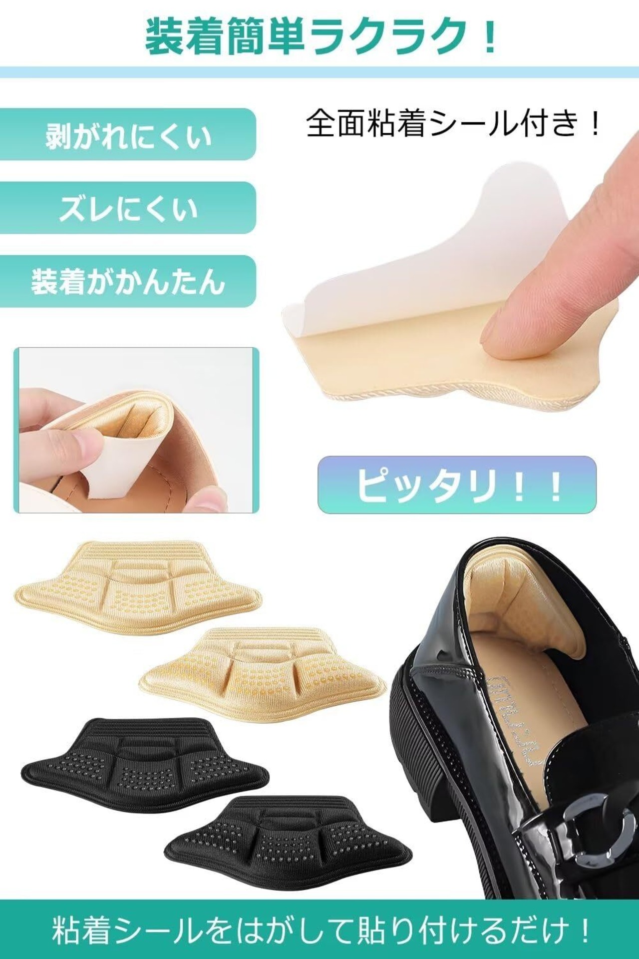 かかとパッド 靴擦れ防止 サイズ調整 革靴 パンプス: スニーカー パカパカ防止 かかと 脱げ 対策 メンズ レディスー 粘着シール付き 自由にカット可能 4足入れ
