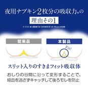 夜用ナプキン2枚分(※1)の吸収力で、多い日の夜もモレ不安0へ。