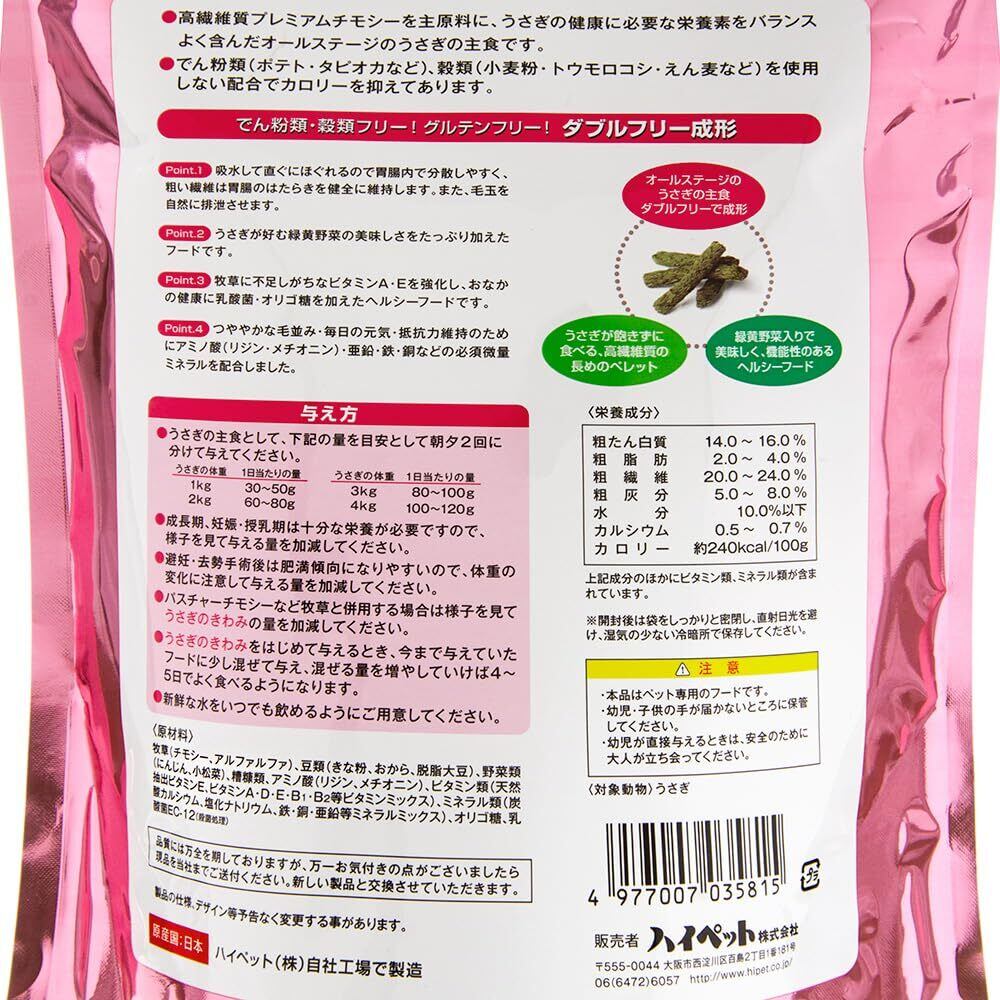でん粉類・穀類フリー、グルテンフリーのダブルフリーで成形した、オールステージのうさぎの総合栄養食です。