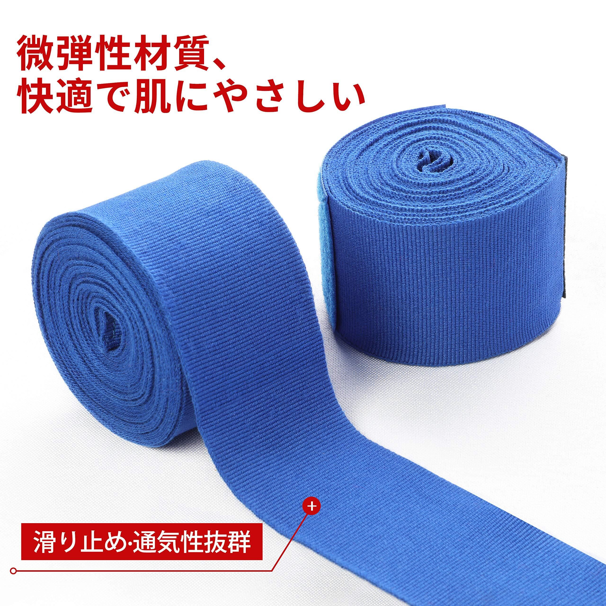 【バンテージ ボクシング用 フィット感に抜群】:簡易バンテージグローブ式とは違い、サイズが似合わないとか、指の付け根部分がほつれるとか、指の間の縫い目が擦れて水ぶくれができるとかという悩みはなく、包帯タイプのバンテージの巻きこつを把握すれば、自分の手をフィット感がぴったりサイズに調整でき、手首を保護、パンチ力のアップ