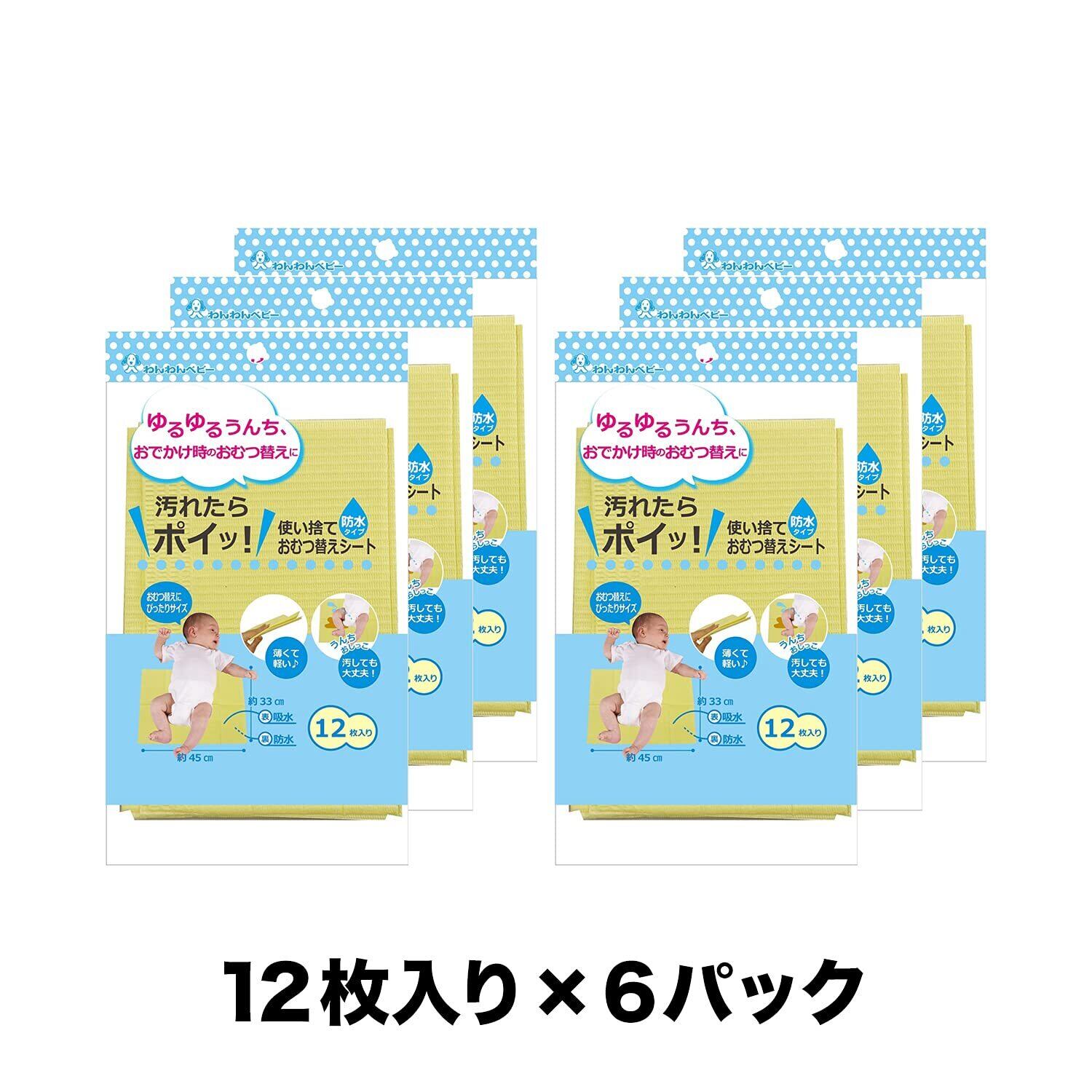 日本パフ 使い捨ておむつ替えシート 72枚入り (12枚入り×6パック) サイズ約33×45cm 防水タイプ イエロー
