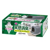 【まとめ買い】エステーペット 猫用 実感消臭 システムトイレ 本体セット+シート4枚 (トイレ本体+チップ2.5L+シート8枚) [消臭力]共同開発 猫 トイレ 猫砂 日本製