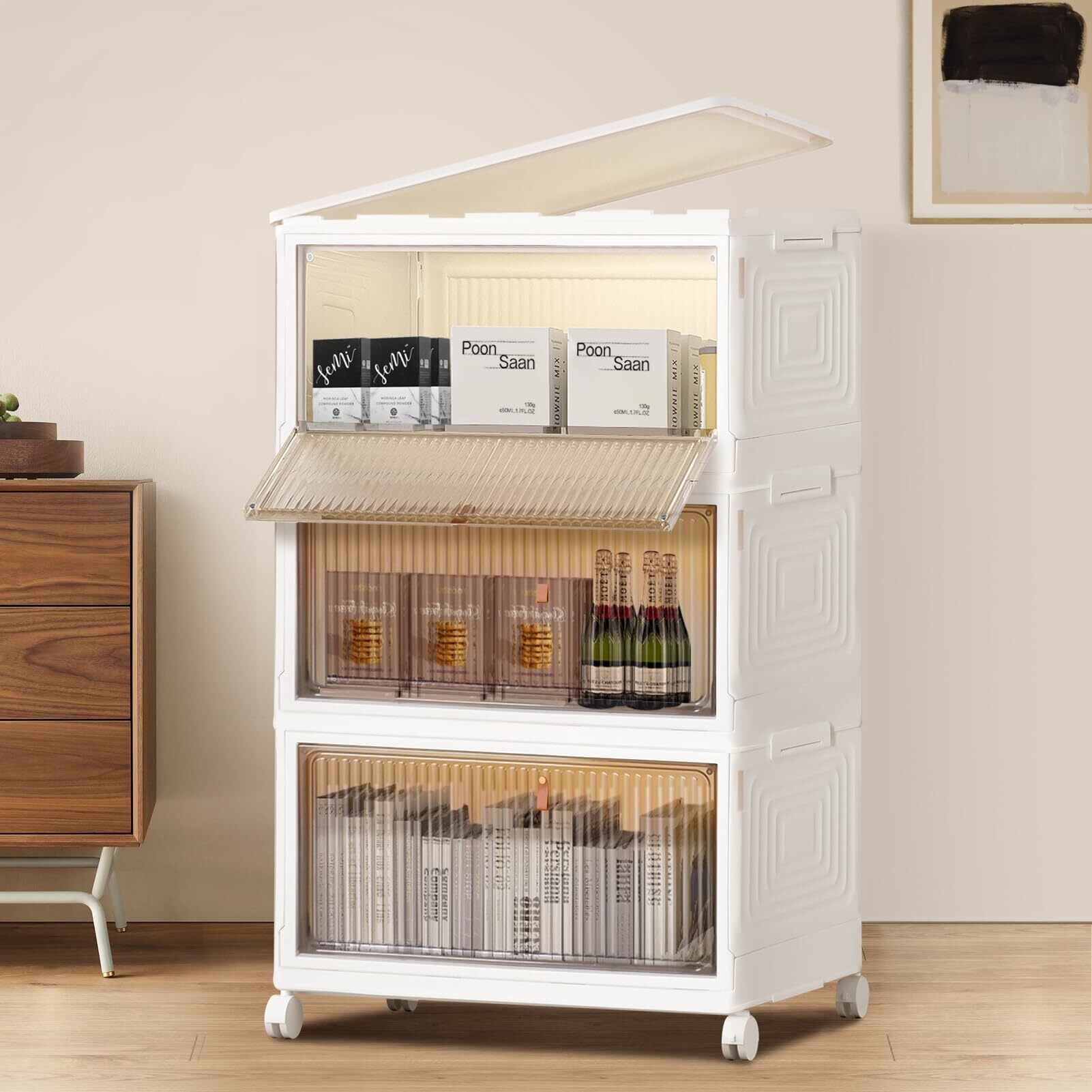 【在庫処分】ホームブリス 収納ボックス 蓋付き 積み重ね 衣装ケース 折り畳み 収納ケース 前開き マグネット式扉 キャスター付き 多機能 組立簡単 透明 おしゃれ 小物/衣類/おもちゃ/書類/靴/化粧品 省スペース 防塵 防湿 無臭 強い耐荷重 家庭用 3段式 一体型 (39cm*27.9cm*64cm,69.6L) | ニコニコSHOP