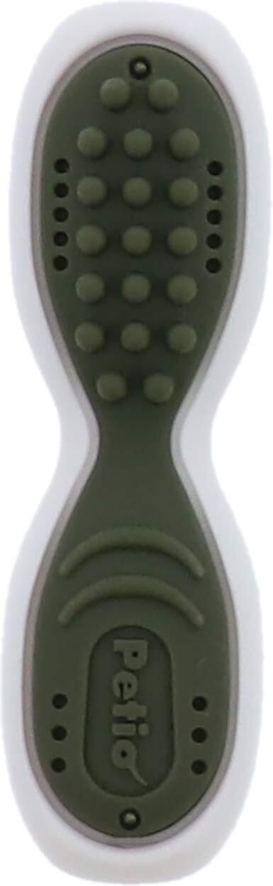 ラバーの突起が口内と舌を刺激する。ペーストポケットにデンタルジェルを塗り込むことで効果UP。遊びながらお口の健康を維持
