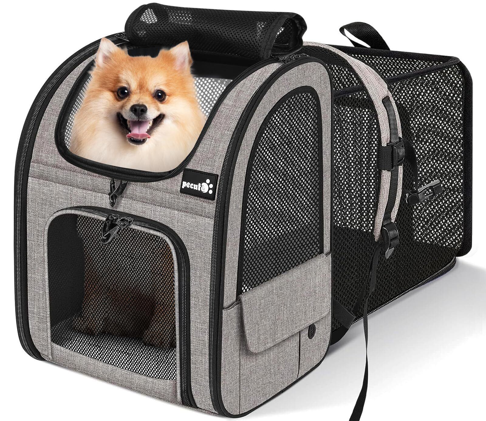【人気商品】ペキュート Pecute ペット 猫 キャリーバッグ 猫用 犬用 リュック メッシュ窓 通気性 拡張可能 2WAY 猫 キャリー リュック 折り畳み お出かけ ドライブ 旅行 通院 防災 避難用 キャリー カーキ XL | ニコニコSHOP