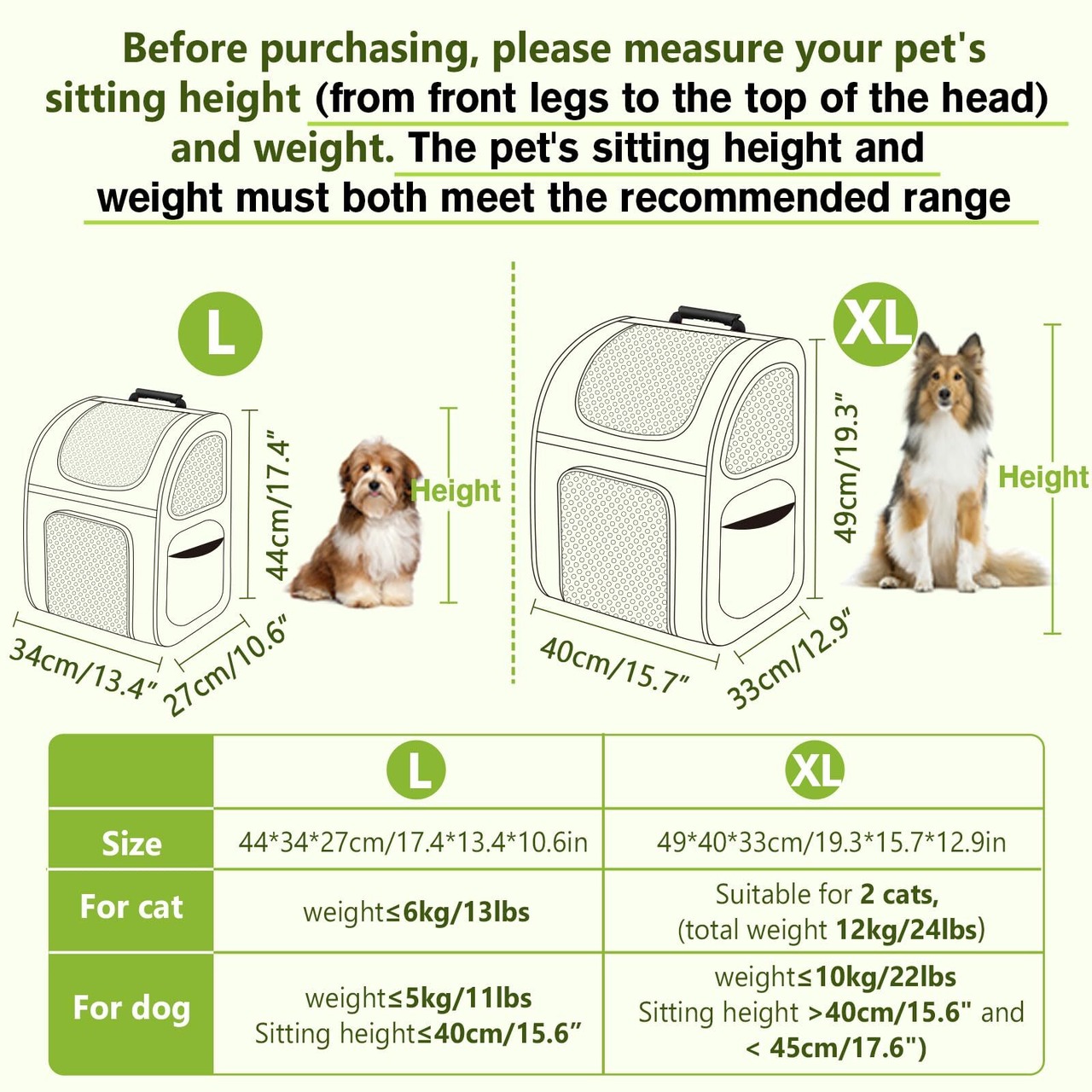 【安定して快適】:冬と夏のデュアルユース生地は、季節の制約を打ち破り、犬 リュックをすべての季節に使用できるようにします。 内蔵の柔らかいスポンジは快適性を高め、頑丈な木の板はより良い重量サポートを提供します。猫用キャリーには複数のジッパードアが付いており、ペットの出入りが簡単です。