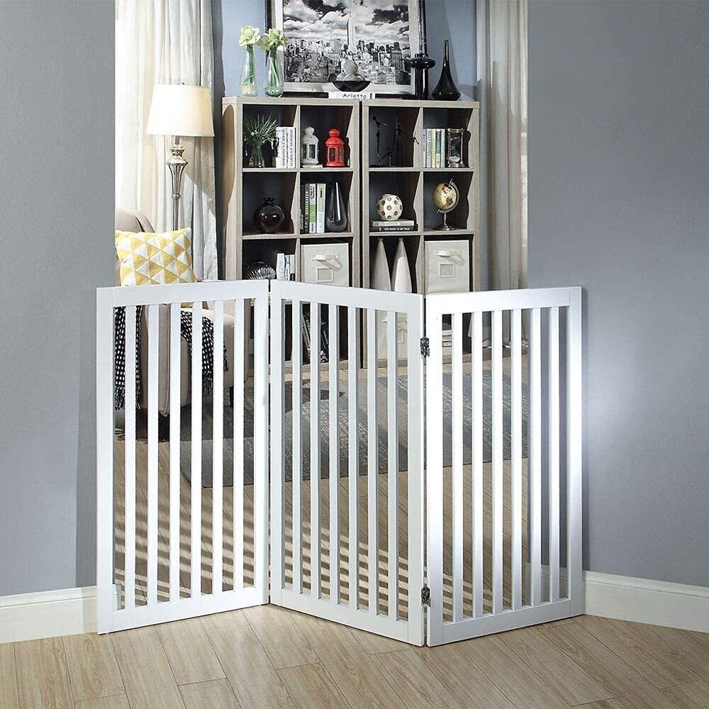unipaws ハイタイプペットゲート置くだけ木製バリア、犬用フェンス 、白い