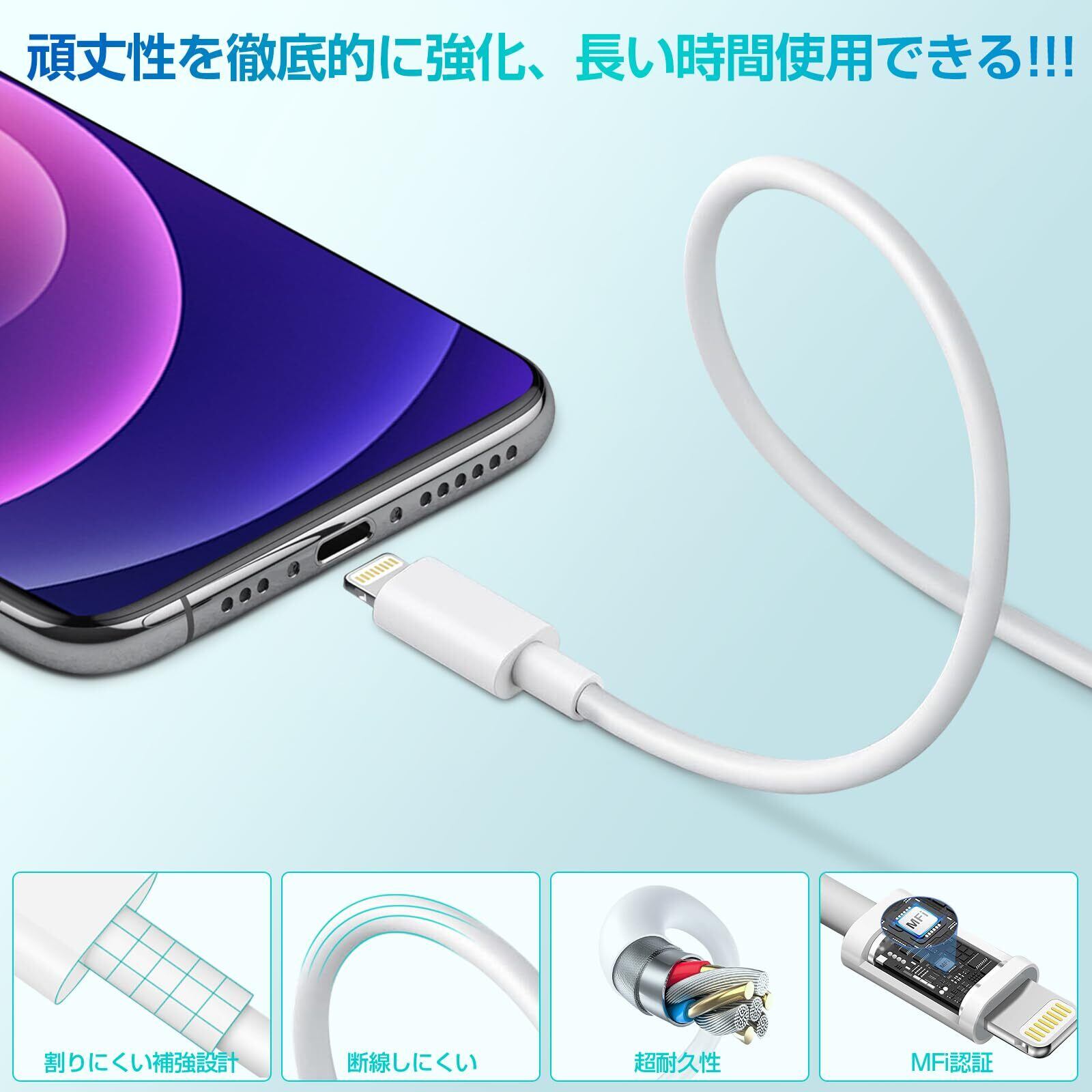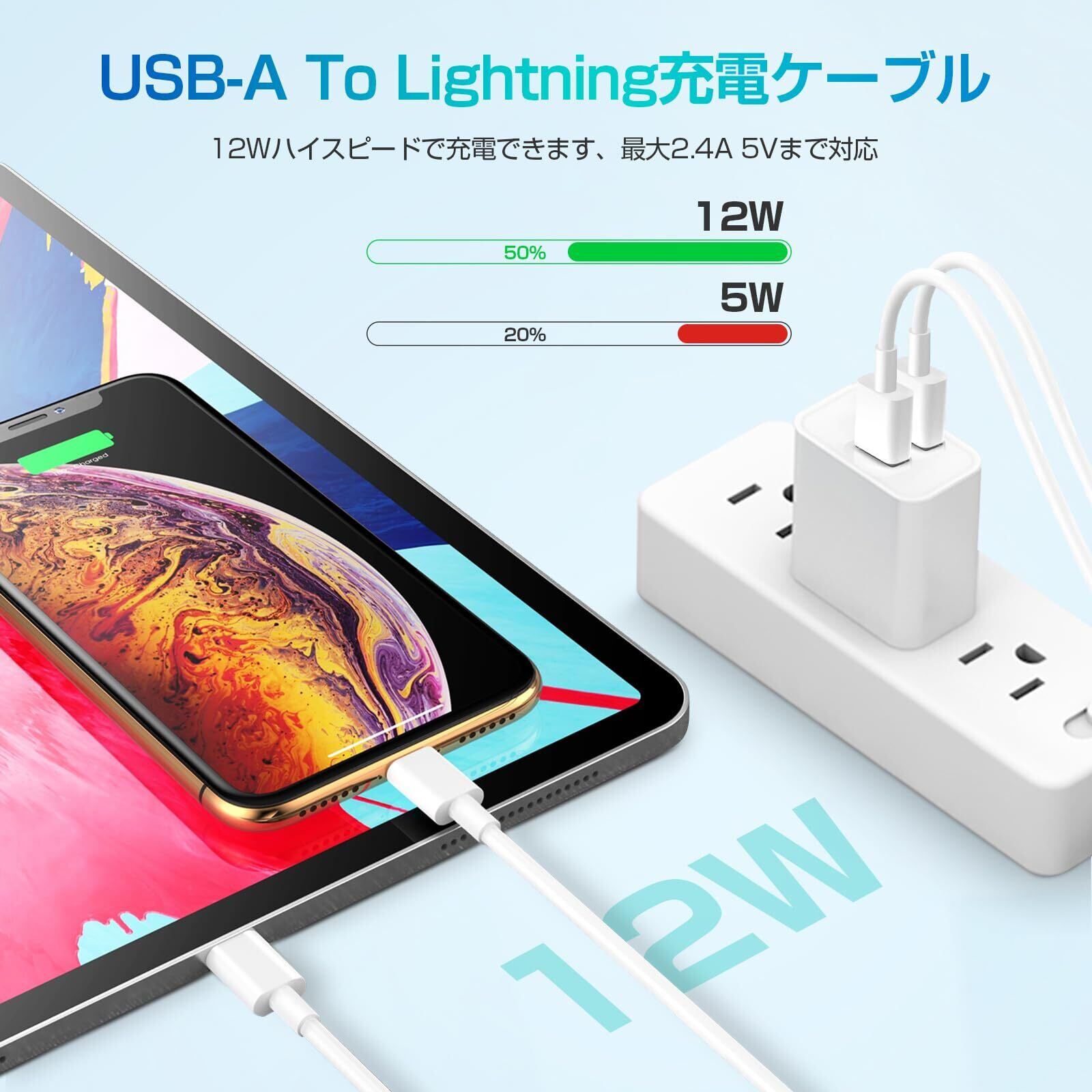 【ライトニングケーブル付き】:2M iPhone 充電用ケーブル2本付き、どこでもこれ1台、iPhone、iPad、Airpods、ワイヤレスイヤホン、モバイルバッテリーなどが充電できます。伝導率の良い銅芯を採用して、従来の5W充電器より3倍速い充電速度をアップします。
