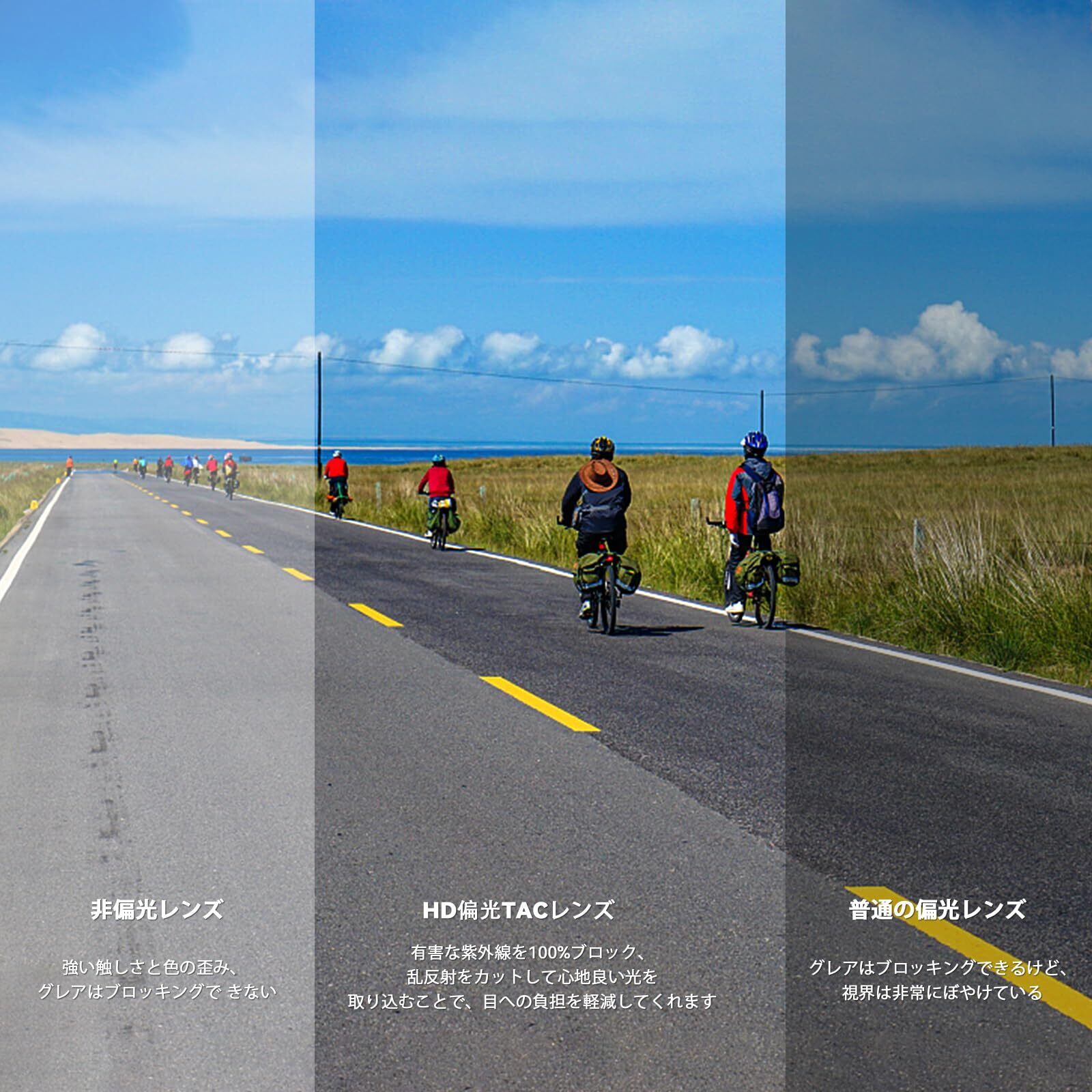 高品質REVO偏光レンズ: すべての偏光レンズは高品質破砕防止TAC材料で作られており、UV 400レンズ保護コーティング、100%有害なUVAとUVB線を遮断する、乱反射をカットして心地良い光を取り込むことできます。反射光や散乱光を排除しやすく、景色をより鮮明で柔らかくすることができます。偏光サングラスは風景をよりクリアで柔らかくし、目の負担を減らします
