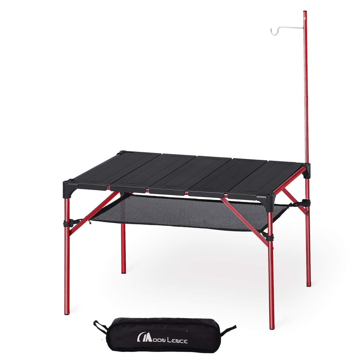 MOON LENCE キャンプ テーブル アルミニウム合金 ロールテーブル ランタンハンガー付き アウトドア ハイキング BBQ 折りたたみ式 コンパクト 超軽量