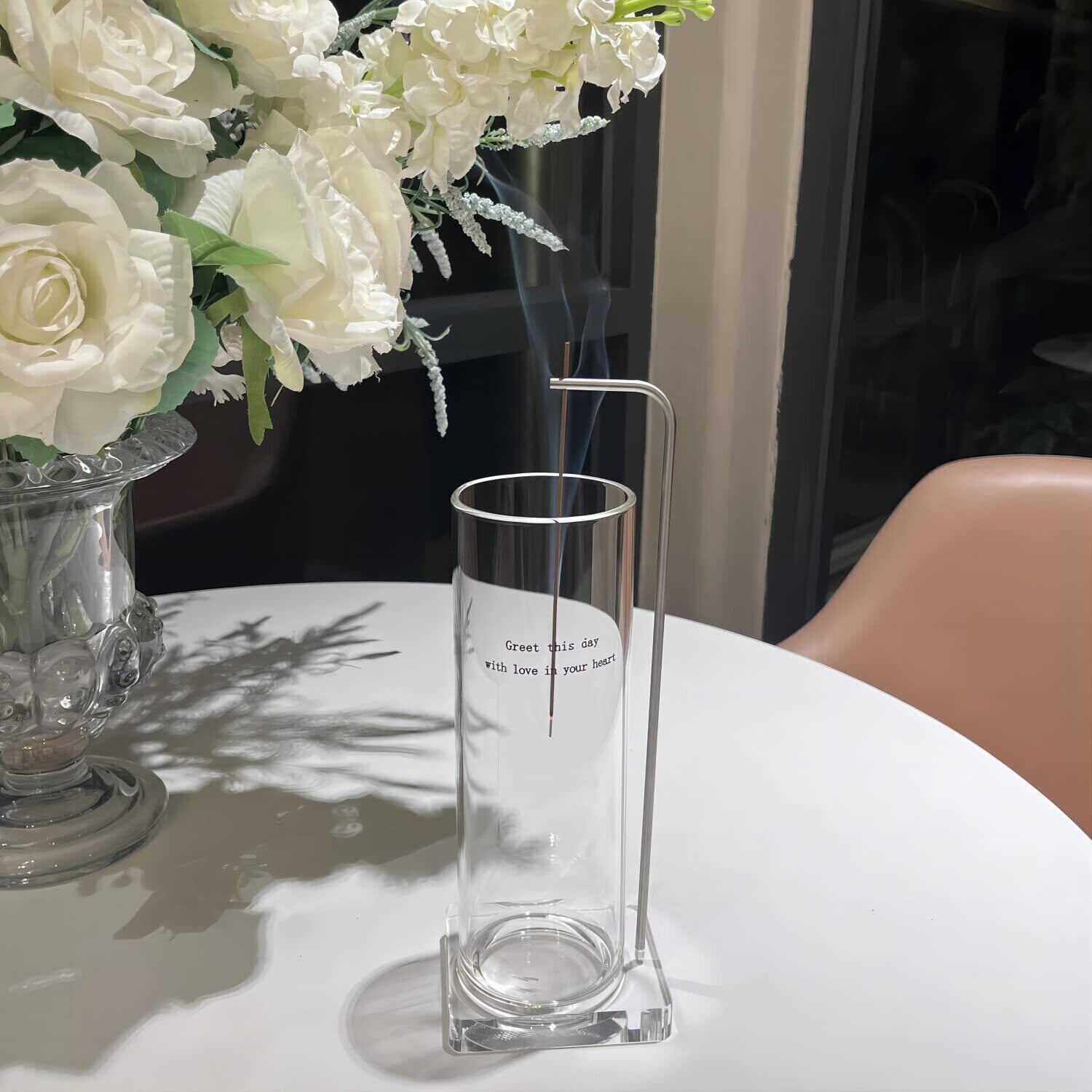 GreenGardenスクエアガラスインセンスホルダー お香立て おしゃれ ガラス製 灰こぼれない 癒し 線香立て 御洒落 シンプル インテリア お家でリラックス (円形+英語あり, アクリル)