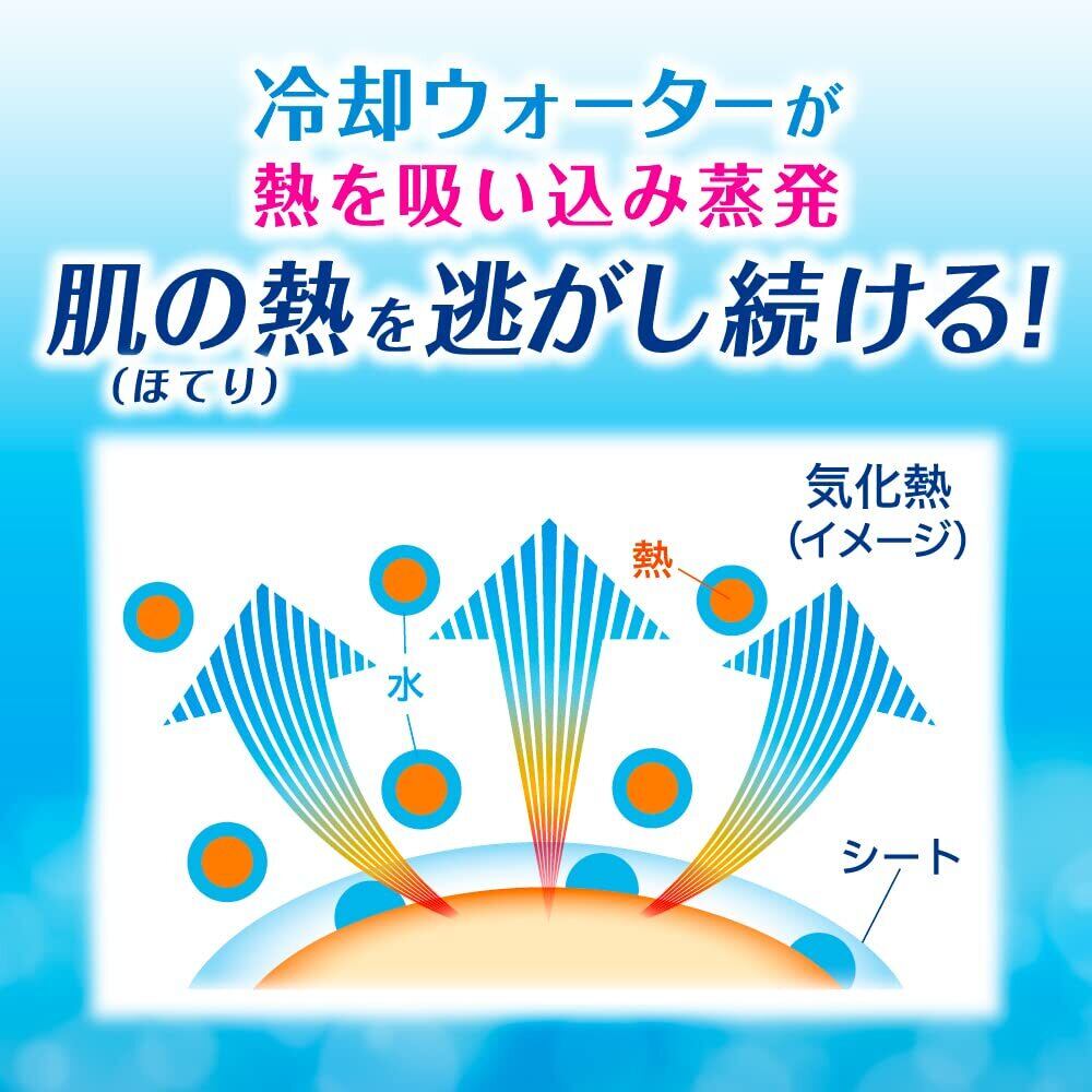 ラクに持ち運べる+ラクに広げられる、らくらくスティックタイプ! のせている間肌温度-3℃が1時間続く! ※27°Cの室内で使用した場合 ウォーターたっぷりひたひた!超大判シート 全身のべたつく汗・ニオイのもととなる皮脂汚れをすっきりふきとる! 厚手のシートに含まれるたっぷりの液が熱を吸い込み蒸発。肌の熱(ほてり)を逃がし続ける! 天然コットン使用でやさしい肌触り。ヒアルロン酸配合+メントール配合でひんやり感長続き。いざという時の備えにも。