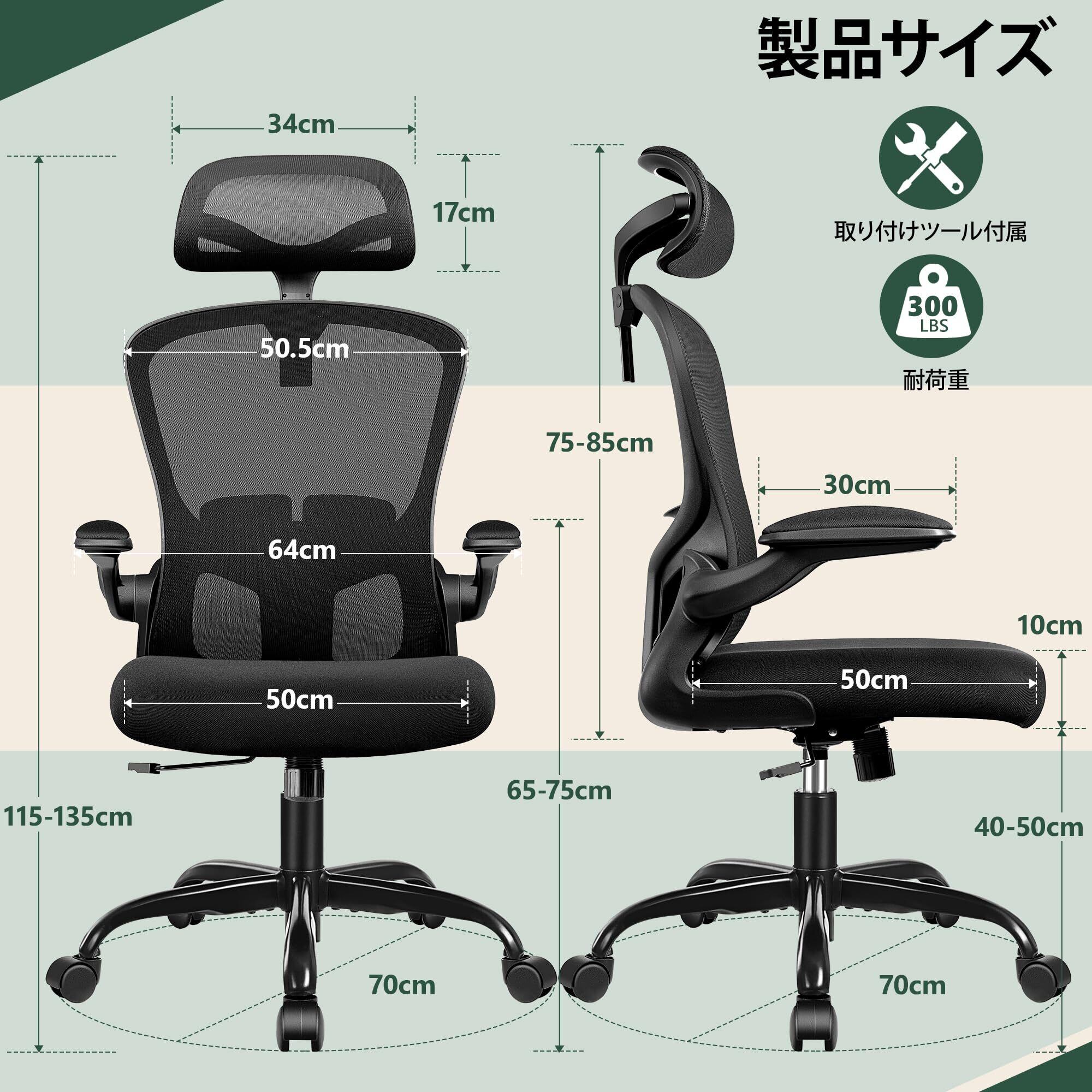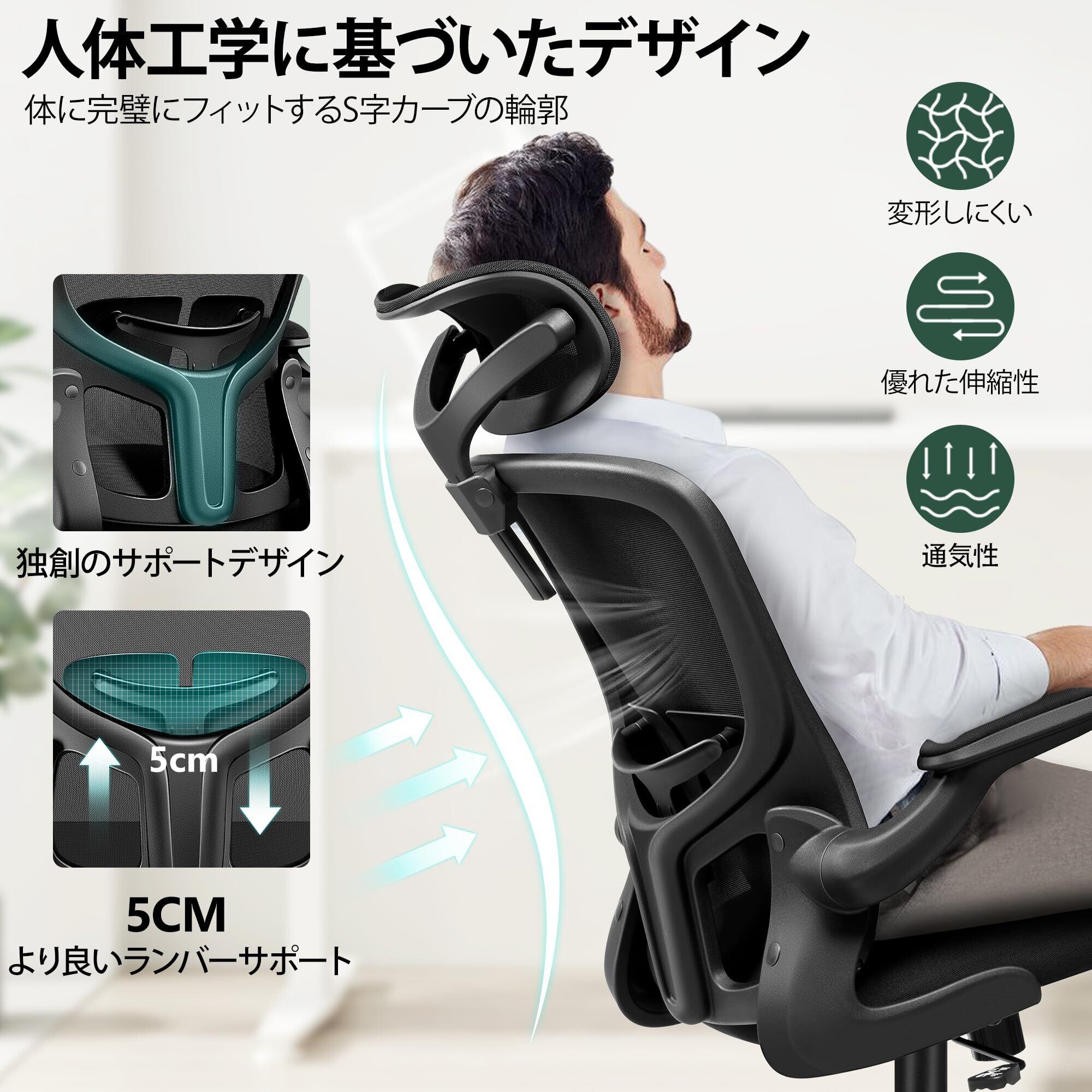 【新着商品】FelixKing オフィスチェア 人間工学 疲れない デスクチェア メッシュ 昇降機能付き 跳ね上げ式アームレスト 椅子 可動肘 腰痛対策 多機能 チェア 通気性 事務用 在宅勤務 360度回転 静音PUキャスター おしゃれ ブラック | ニコニコSHOP