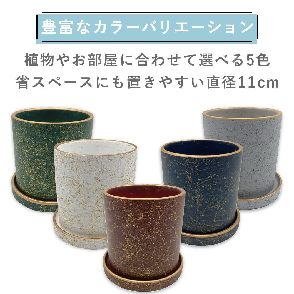 TKY 植木鉢 陶器鉢 鉢植え プランター プラントポット 4号鉢 観葉植物 多肉植物 受け皿 11cm (グリーン)