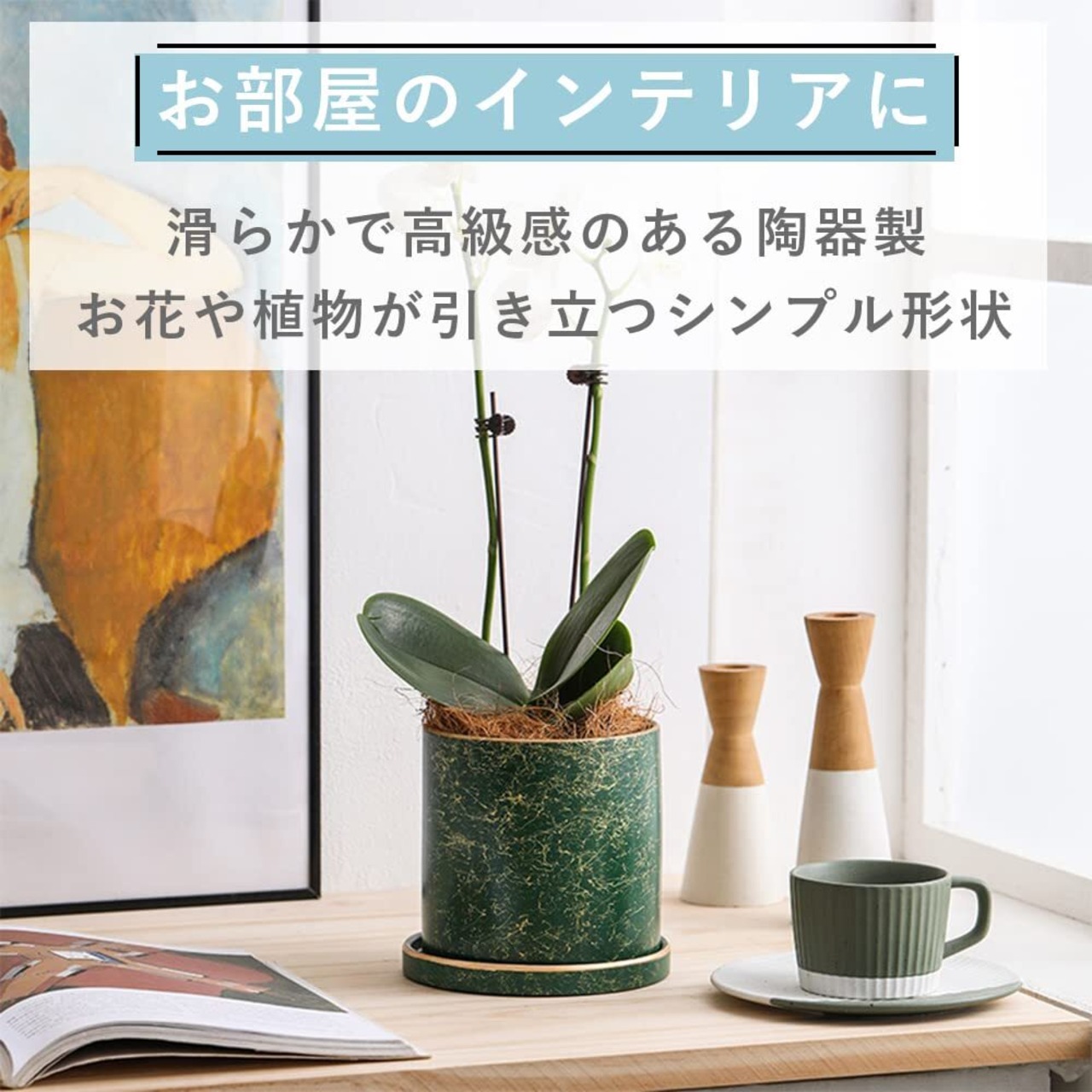 【お部屋のインテリアに】陶器製の植木鉢になります。表面は滑らか質感で高級感がありながらシンプルなデザインですので、植物をより魅力的に飾ることができます。