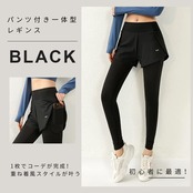【パンツ付き一体型】スポーツ・フィットネス・ヨガに最適なショートパンツ一体型レギンスです。一体型なので重ね着やコーデを考える必要がなく、トップスを合わせるだけで簡単にトータルコーデが完成します。ショートパンツがヒップラインをカバーしてくれるので、ジムで運動をしたいけどおしりや太もも周り、生足は出したくないなんて方にもおすすめです。