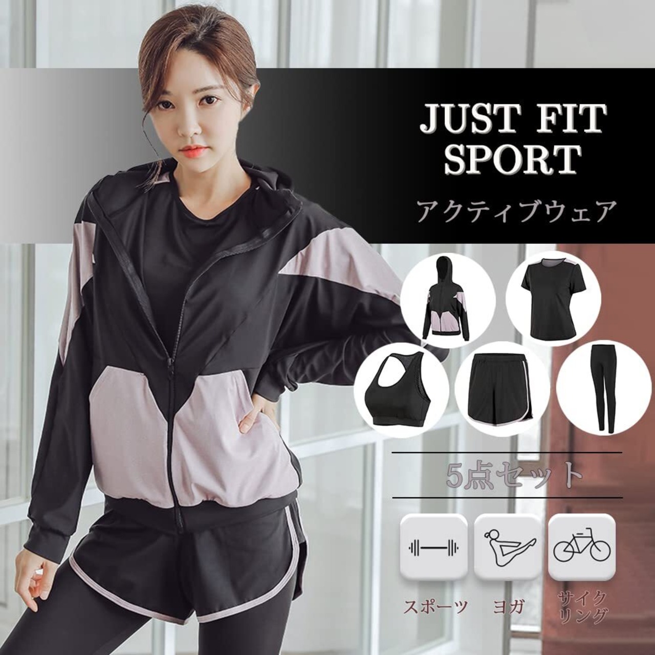 【人気商品】[DawnRain] スポーツウェア レディース ヨガウェア トレーニングウェア ランニングウェア 上下 5点セット 伸縮性 通気 吸汗速乾 フィットネス ジャージ スポーツブラ ロングタイツ パーカー 半袖 短パンツ 春夏秋冬 | ニコニコSHOP