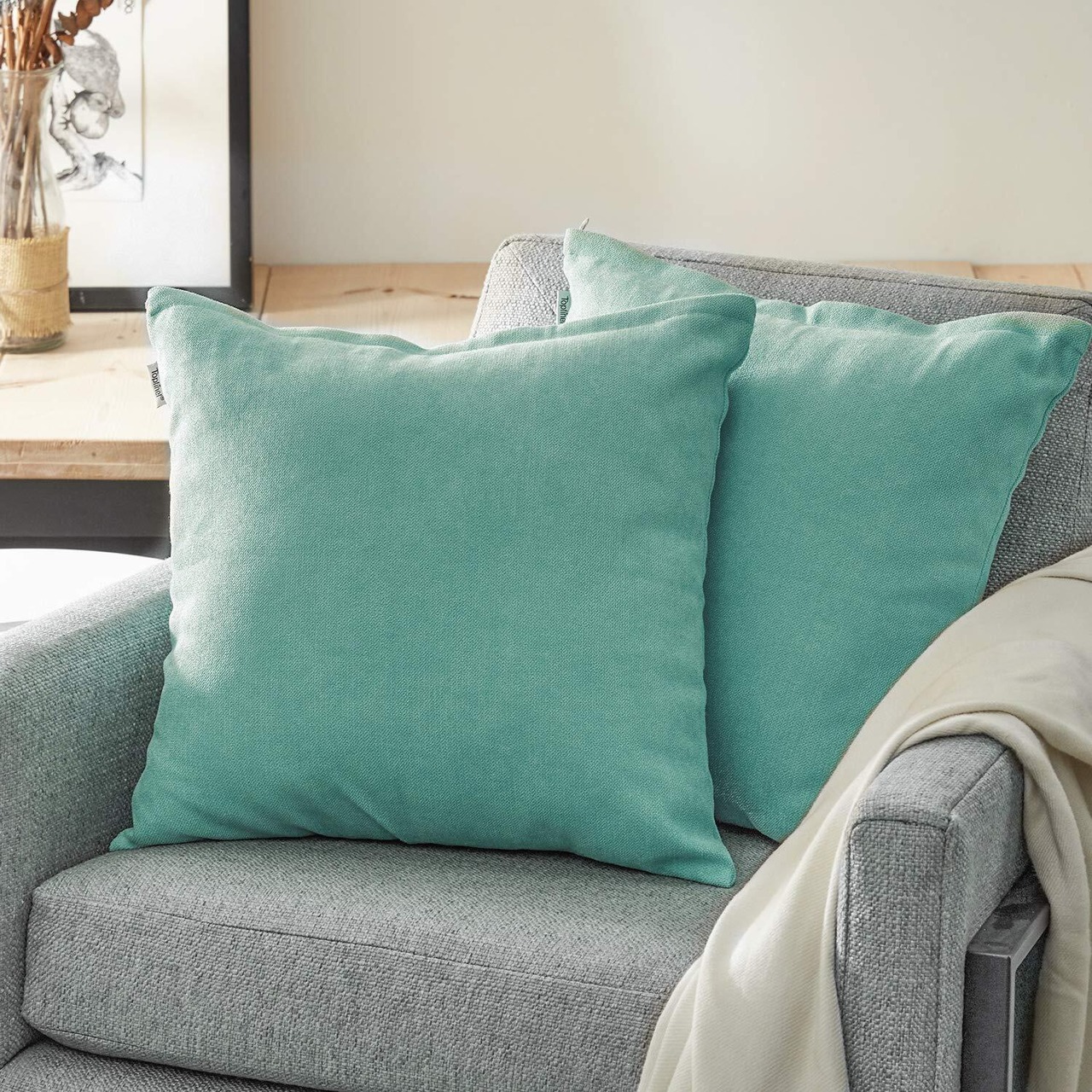 Topfinel クッションカバー リネンっぽい 45×45cm 北欧 おしゃれ 綿麻 無地 ソファ背当て 装飾枕カバー 座布団カバー 浅いブルー 2枚セット(全18色)