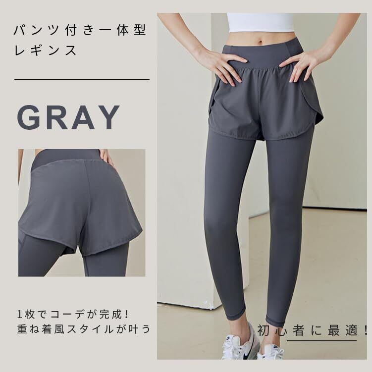 【パンツ付き一体型】スポーツ・フィットネス・ヨガに最適なショートパンツ一体型レギンスです。一体型なので重ね着やコーデを考える必要がなく、トップスを合わせるだけで簡単にトータルコーデが完成します。ショートパンツがヒップラインをカバーしてくれるので、ジムで運動をしたいけどおしりや太もも周り、生足は出したくないなんて方にもおすすめです。