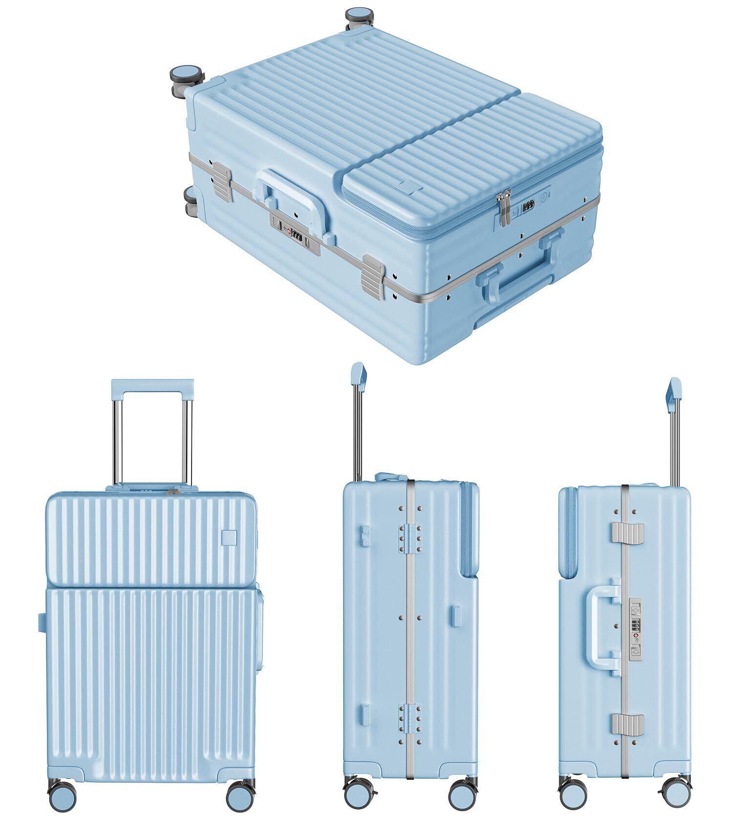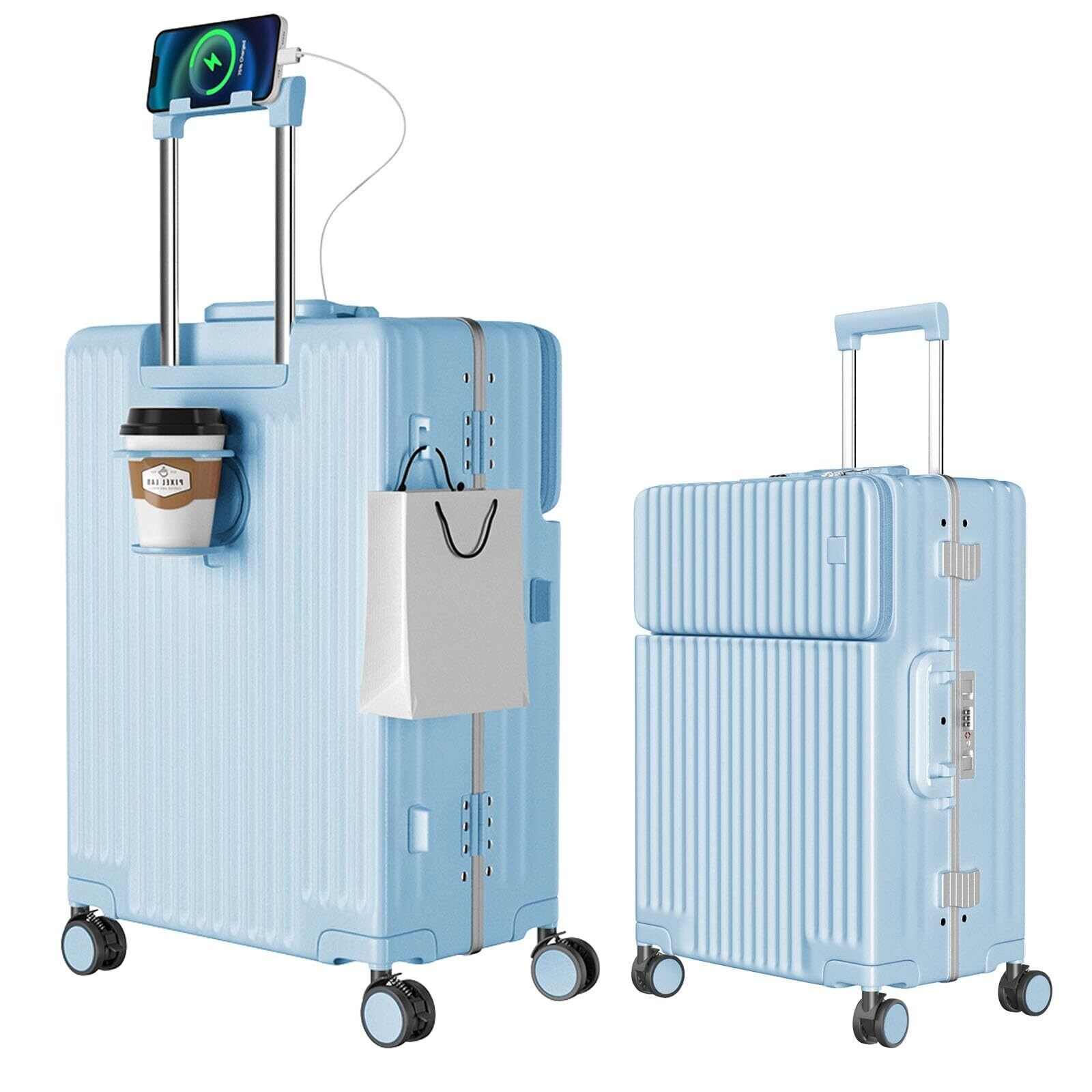 [Ashard] スーツケース 多機能フロントオープン キャリーケース ストッパー付き 機内持ち込み キャリーバッグ 携帯スタンド USBポート付き カップホルダー付き 隠しフック機能 超軽量 耐衝撃 静音 360度回転 ダブルキャスター アルミフレーム ピュアPC材質 大容量 TSAロック搭載 旅行 ビジネス 出張 (ライトブルー, Sサイズ /42L /機内持込 (1-3泊))
