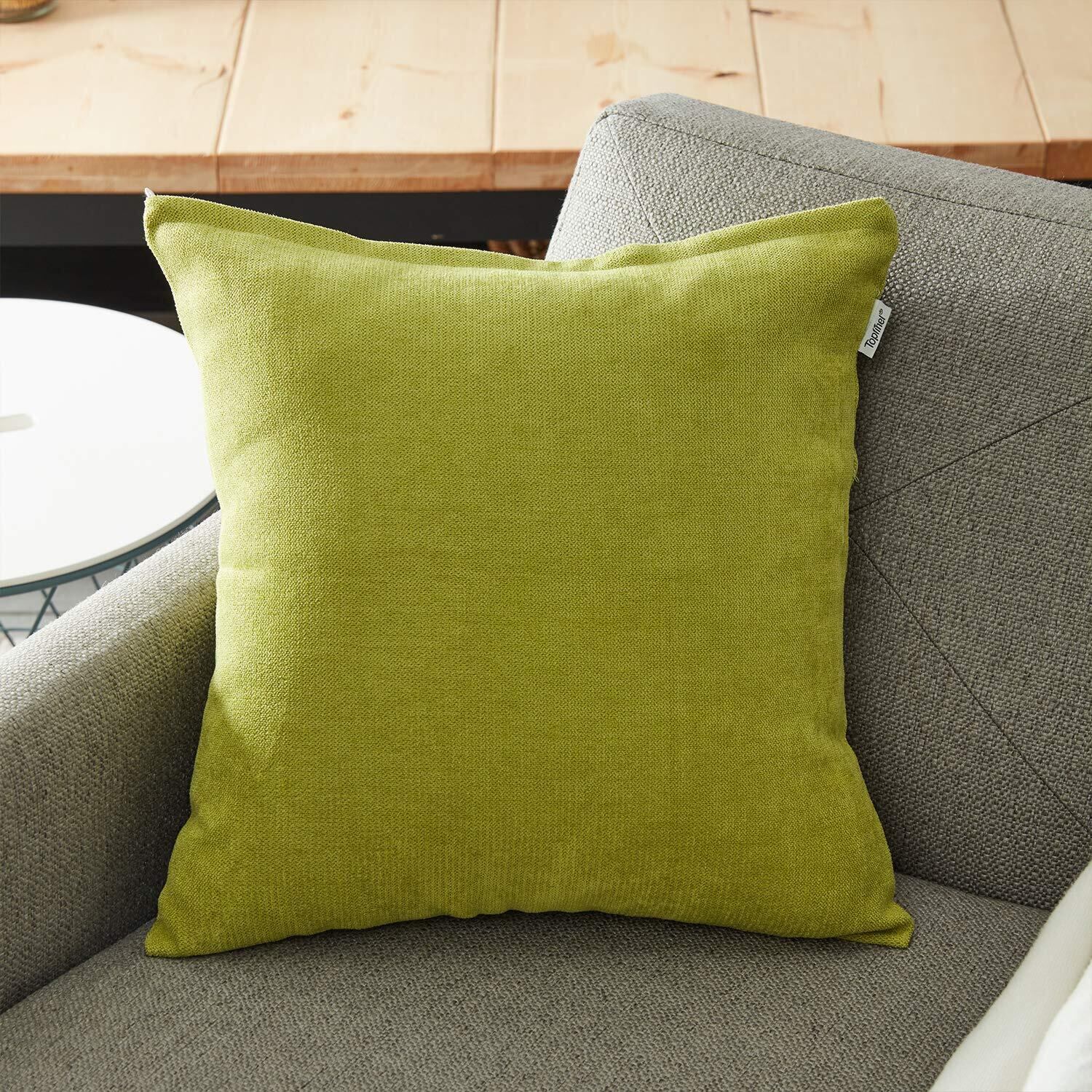Topfinel クッションカバー リネンっぽい 45×45cm 北欧 おしゃれ 綿麻 無地 ソファ背当て 装飾枕カバー 座布団カバー グリーン 2枚セット(全10色)